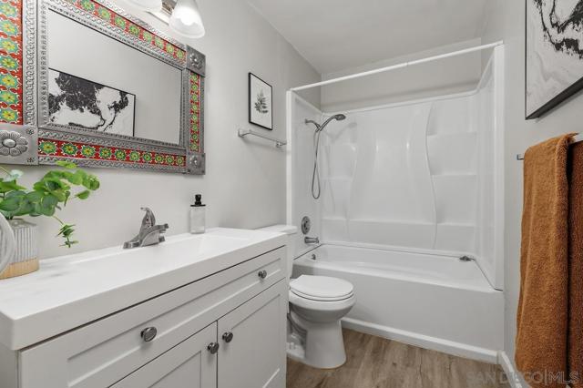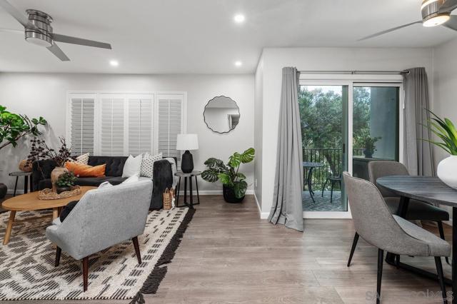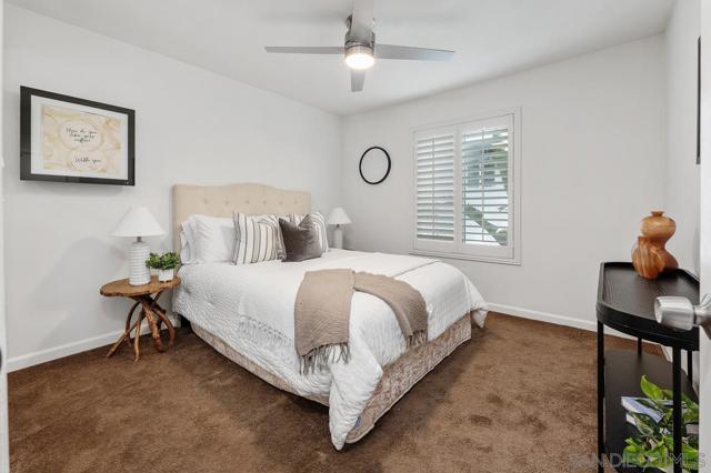 Welcome to this private top-floor corner unit ideally located in north Pacific Beach. This 2-bedroom, 1-bath residence offers 800sqft of thoughtfully updated living space, combining modern finishes with comfort and convenience. Inside, luxury vinyl plank flooring runs throughout the main living areas, complemented by plush carpeting in the bedrooms. Custom plantation shutters add both style and privacy, while modern mini-split systems in the living room and both bedrooms provide efficient heating and air conditioning year-round. The fully renovated kitchen showcases quartz countertops, high-end stainless steel appliances, soft-close white shaker cabinetry, and a clean, contemporary design perfect for everyday living and entertaining. Just off the living room, a private balcony surrounded by lush, mature trees creates a peaceful outdoor retreat. Additional highlights include one assigned parking space and a conveniently located community laundry room just steps from the unit. Enjoy a prime location within walking distance to Kate Sessions Park and approximately 13 blocks from Pacific Beach’s vibrant coastline, dining, shopping, and entertainment. Easy access to highway 5 makes commuting simple and convenient. VA Approved!