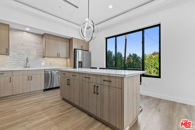Bold architecture meets modern vision in this brand new construction residence, designed for today's elevated lifestyle. From the moment you enter, soaring high ceilings and a dramatic sense of volume set the tone, flooding the home with natural light and creating a seamless connection between form and function. This thoughtfully designed home offers 4 spacious bedrooms and 3.5 designer bathrooms, anchored by an open concept floor plan ideal for both everyday living and sophisticated entertaining. Clean lines, contemporary finishes, and intentional sightlines highlight the home's architectural presence while maintaining warmth and livability. The primary suite is a true retreat, featuring generous proportions, a spa-inspired bath, and a private balcony, perfect for morning coffee or evening unwinding with serene views. Secondary bedrooms are well-appointed, offering flexibility for family, guests, or a home office. The heart of the home flows effortlessly, blending kitchen, dining, and living spaces into one cohesive environment, perfect for gatherings, celebrations, or quiet nights in. Every detail reflects quality craftsmanship, modern vision, and refined taste. Located on a quiet street in the heart of Tarzana, this newly built home delivers the perfect balance of privacy, style, and convenience, just moments from shops, dining, and everything the Valley has to offer!