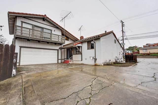 Charming 1828 sf home on a 6684 sf Lot. Two master suites on ground floor. Original hardwood floors, spacious living room flows into the dining area. Open kitchen with a sliding door to the private yard, two large garages and a long drive way for ample parking. upper master suite offers privacy and comfort, add your own personal touches into your dream home. Top rated CV schools, easy access to BART, freeway, Lake Chabot, vibrant shopping & restaurants, peaceful lifestyle with city amenities. This home offers a warm and large space ready for your vision. Sold "As Is", a great opportunity to build equity in Castro Valley. Open House: Sat & Sun, 2/21 & 2/22 1-4 pm