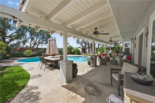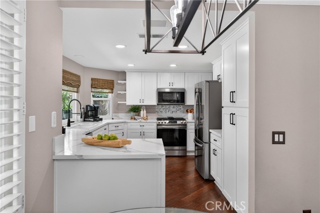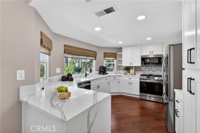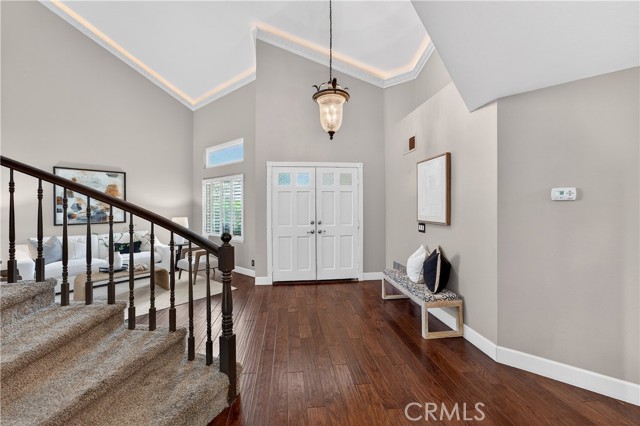 Tucked away at the end of a quiet cul-de-sac in the highly desirable community of Robinson Ranch, this beautifully upgraded home offers the perfect blend of privacy, space, and lifestyle. Thoughtfully renovated from top to bottom, this move-in-ready residence showcases hardwood flooring downstairs, fresh interior and exterior paint (including banister and beams), 5” baseboards throughout, new windows, and recessed lighting in the kitchen, office, entry and family room. The living room features elegant plaster crown molding and uplighting, while a built-in office and custom closet built-ins add both function and style. The fully remodeled kitchen shines as the heart of the home, complemented by a new A/C and heater, solar, rain gutters, and extensive upgrades throughout. Bathrooms have been tastefully refreshed, including a new master vanity and a beautifully remodled secondary bath. Step outside to enjoy landscape lighting in the front and back, along with a sparkling pool featuring new plaster, tile, and equipment—perfect for relaxing or entertaining year-round. Living in Robinson Ranch means access to award-winning schools, resort-style pools, parks, tennis and pickleball courts, and miles of scenic trails. Just minutes away is Rancho Santa Margarita, known for its top-rated restaurants, vibrant community events, and welcoming small-town charm. Commuters will appreciate easy access to California State Route 241, offering a convenient drive to the Irvine Spectrum Center and the beautiful beaches of Southern California.