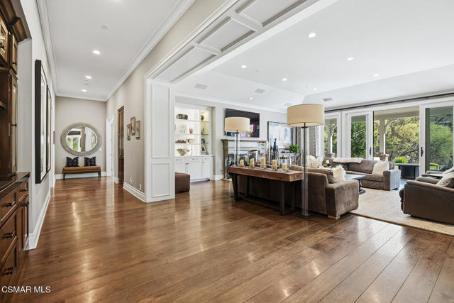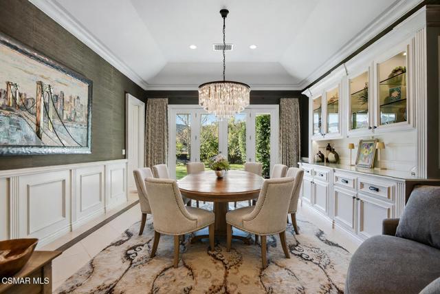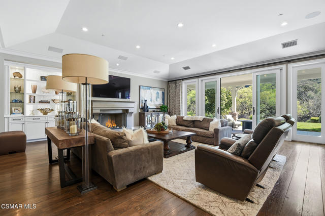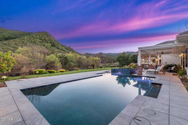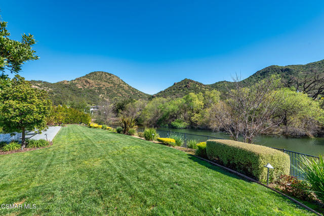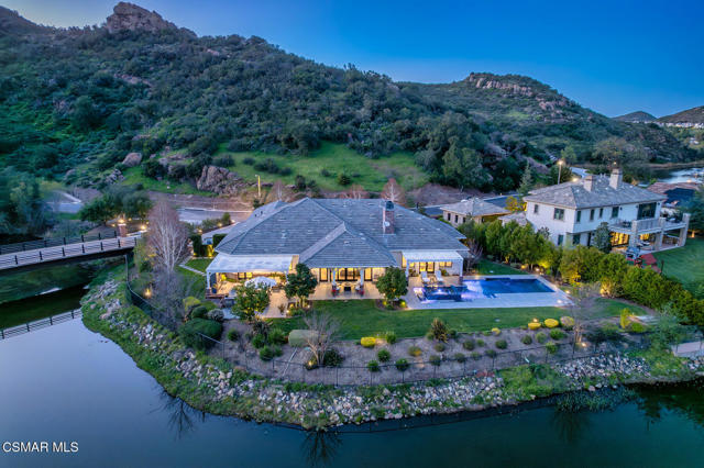 Set along the tranquil Lake Sherwood inlet, behind the guard gates of Sherwood Country Club, this single-story California Ranch residence offers a lifestyle few ever experience. With the lake, golf course, and the Santa Monica Mountains as its backdrop, the setting feels private, peaceful, and completely one of a kind.Built in 2016 and spanning nearly 5,000 square feet, the home features four bedrooms and four and one-half baths, all thoughtfully designed on one level. Light-filled living spaces flow effortlessly from the gourmet kitchen and breakfast room to the expansive great room, where breathtaking inlet, lake, and golf course views become part of everyday life. The primary suite serves as a serene retreat, offering comfort, privacy, and a true sense of escape.Designed for exceptional indoor-outdoor living, the property includes a resort-style pool and spa, a grassy yard, and a fully equipped outdoor kitchen and fireplace--perfect for entertaining or quiet evenings at home. A shared dock provides direct access to Lake Sherwood, ideal for boating, paddleboarding, kayaking, or leisurely sunset cruises. From morning walks to afternoons on the water and evenings at the club, this home captures the very best of the Sherwood lifestyle.Finished with a four-car garage, Lutron lighting, and Savant home automation, this is a rare single-story dream home in one of Sherwood's most coveted and irreplaceable settings.