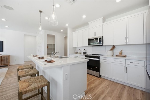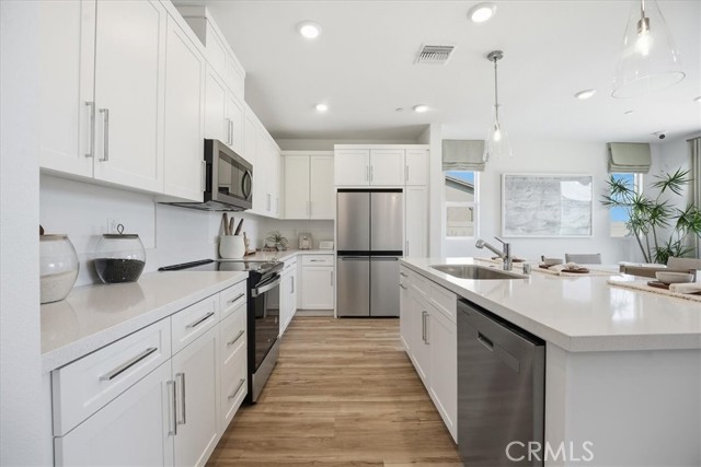 Welcome to this beautiful home located in the desirable Sonora community of Lancaster, CA. This spacious residence offers a thoughtful layout, modern upgrades, and plenty of natural light throughout. At the front of the home, you'll find a charming gable-style bedroom featuring mirrored closet doors. A nearby full bathroom includes a double-vanity, tub/shower combo, and upgraded finishes. An additional bedroom also features mirrored closet doors and ample storage. The home offers a private entry into the master suite, complete with its own walk-in shower and large walk-in closet, creating a comfortable retreat. You’ll also enjoy convenient access to the laundry room and garage from this area of the home. The heart of the home is its large open-concept living space, showcasing a high backsplash, custom tile work, and premium Whirlpool appliances, including a Whirlpool refrigerator and electric stove. A walk-in pantry and upgraded pendant lighting add both style and function. The kitchen window overlooks your grassy backyard, with a nice side yard perfect for outdoor living. With modern upgrades, great storage, and a welcoming layout, this home blends comfort and style in one of Lancaster’s most sought-after neighborhoods. Schedule your private tour today!