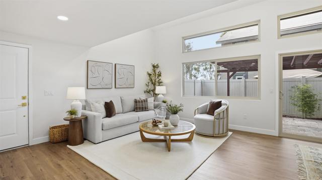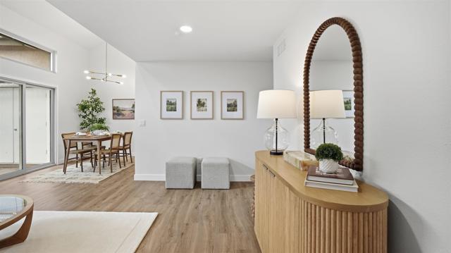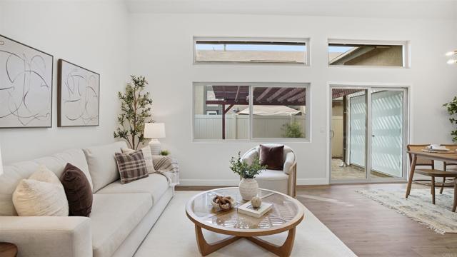 Vaulted ceilings, designer finishes, and a layout that lives like a single story — this fully renovated 3 bedroom, 2 bath Paradise Hills townhome is the definition of move-in ready. Thoughtfully reimagined from top to bottom, the homes key features are new luxury vinyl plank flooring throughout, a completely renovated kitchen with quartz countertops, brand-new cabinetry, and a modern statement backsplash that elevates the entire space- to only name a few. The main level offers two spacious bedrooms and a full bath — a rare and highly desirable setup for those looking to downsize or enjoy everyday living without relying on stairs. Both bathrooms have been beautifully renovated- everything is NEW! Upstairs, the private primary suite is ideal separation and includes its own fully renovated bathroom, creating a true retreat within the home. Additional highlights include a private patio yard with newer vinyl fencing that enhances the detached feel, a new HVAC system, dual-pane windows for year-round comfort, and a well-maintained HOA. Conveniently located near the 54 freeway with easy access to the 125 and 805, and approximately 10 minutes to Downtown San Diego, this home offers both functionality and commuter-friendly convenience. Renovated. Functional. Ready for its next chapter.