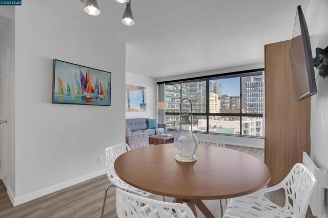Bright and beautifully upgraded, this serene upper floor studio is located in the heart of one of San Franciscos most vibrant and walkable neighborhoods - Yerba Buena. Just steps from SF MoMA, Yerba Buena Gardens, and the Moscone Center, the home combines modern finishes with unbeatable urban convenience. As you step inside you are greeted by updated kitchen which features quartz countertops, sleek appliances, and a city view as you peer through the main living space. With luxury vinyl plank floors throughout, trendy bathroom updates, and a wall of north-facing windows that fills the space with natural light and offers expansive views. Residents enjoy a beautiful third-floor garden, 24/7 front desk service, secure package room, and on-site management. HOA fees cover water, sewer, garbage, insurance, and common area maintenance. Leased parking available for $360/month. Nearby SoMa, Mission Bay, South Beach. Close to Trader Joes, Target, Costco and more. Easy access to CalTrain, BART, and Muni.