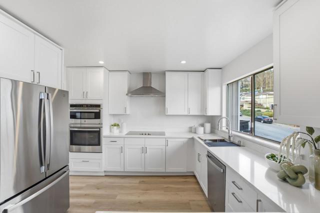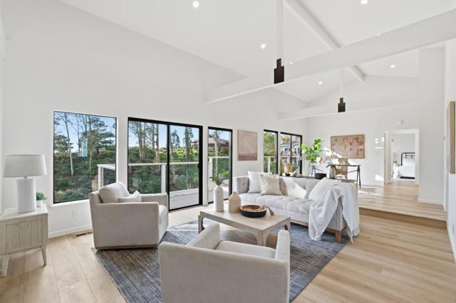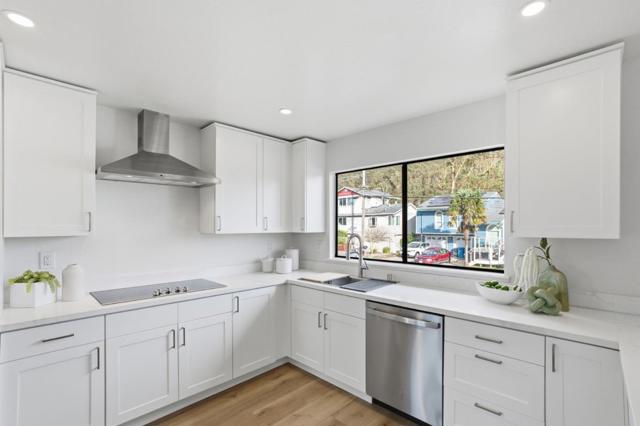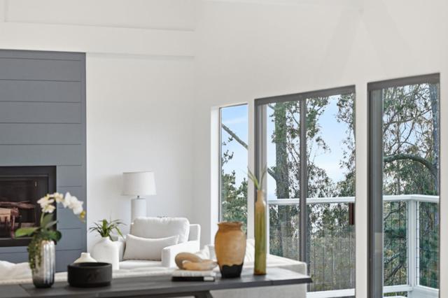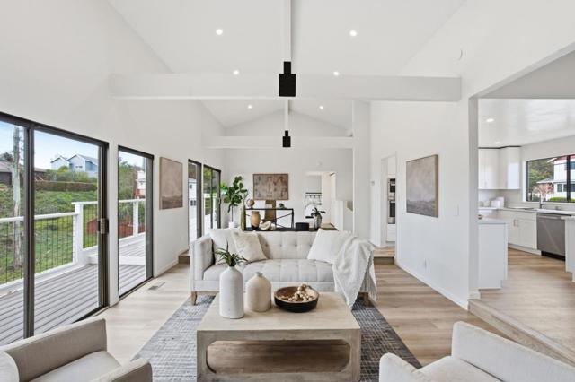 Welcome to this beautifully updated 3-bedroom, 2.5-bath El Granada Highlands home. Offering approximately 1,890 sq ft on a 5,581 sq ft lot, this move-in-ready property features a functional, well-designed layout with generous living spaces. The main living room just off the kitchen showcases vaulted ceilings, recessed lighting, fireplace and direct access to the decks, creating seamless indoor-outdoor flow and capturing peek-a-boo ocean and hillside views. The spacious floor plan provides comfortable separation between living and sleeping areas, offering flexibility for everyday living, dedicated work-from-home space, or hosting guests. The home has been updated with new luxury vinyl plank flooring, and refreshed painting throughout. The kitchen features new cabinetry, quartz countertops, stainless steel appliances. Enjoy serene eucalyptus forest vistas from this elevated Highlands setting. Located just minutes from Pillar Point Harbor, Surfer's Beach, the coastal trail, mountain biking, shops and dining, this home offers the space, upgrades, and an ideal location.