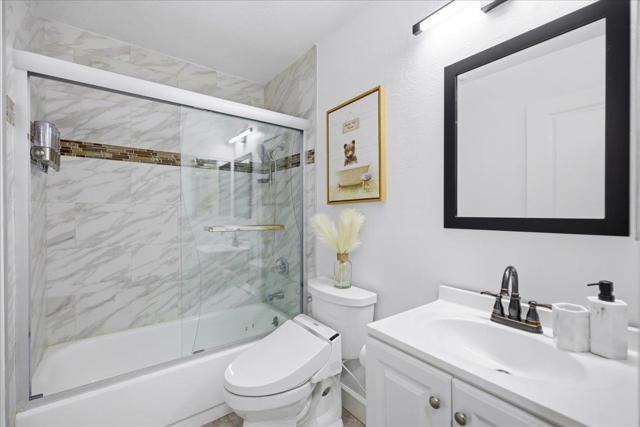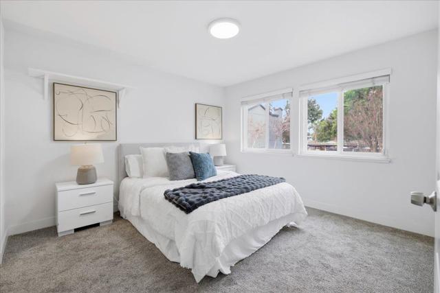 HOA fee covers WATER, a great value for the area. Move-in Ready 2BD/2BA, 926 sq ft TH style living in a highly desirable Silicon Valley location. The kitchen and both bathrooms have been fully renovated. Features include new interior paint, dual-pane windows, hardwood flooring in the living room, recessed lighting, and epoxy-coated garage floor. Modern appliances, washer and dryer included. One attached garage plus abundant community parking. Top-rated public schools, including Prospect High School in Saratoga. Excellent private school options nearby, including Stratford School just across the street and The Harker School within close proximity. Minutes to Apple, Santana Row, Westfield Valley Fair, major tech campuses, shopping, dining, and easy access to Hwy 280 & San Tomas Expressway.