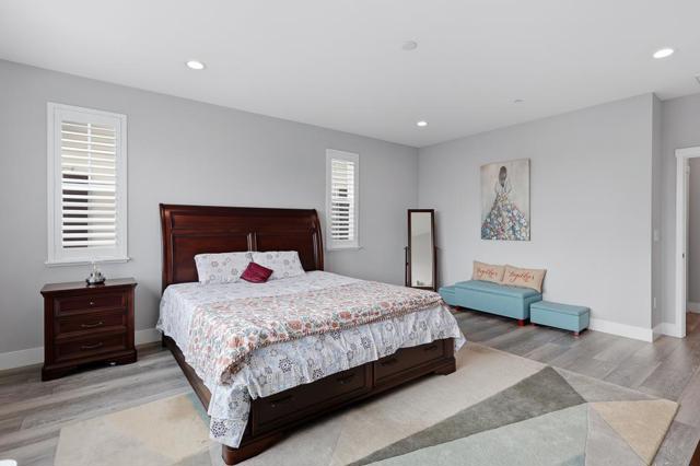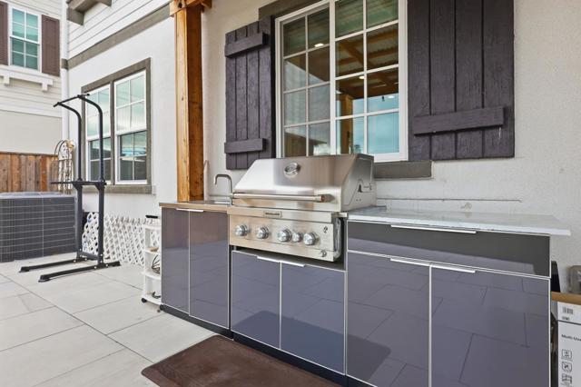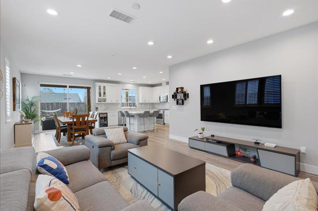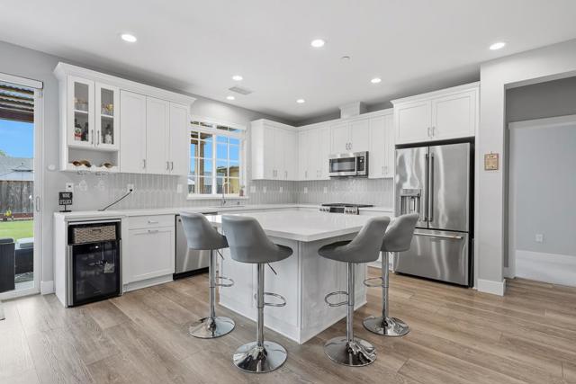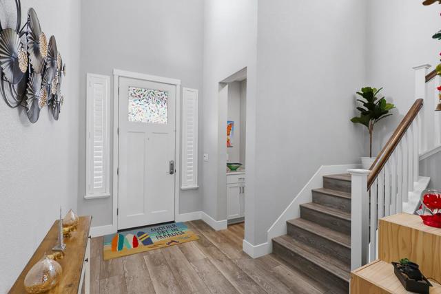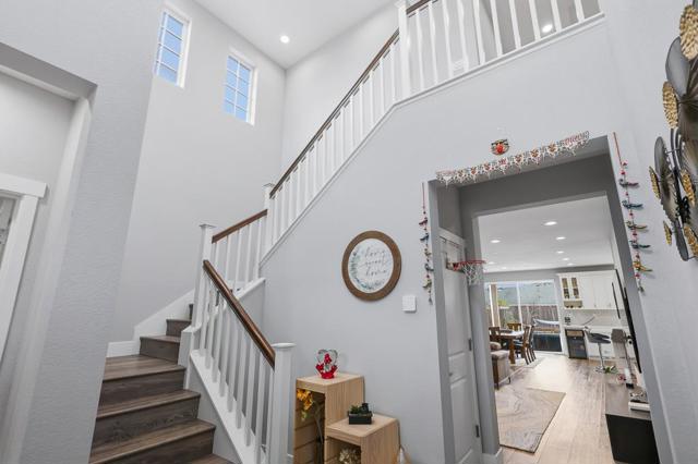 Fabulous new construction built in 2022, offering modern luxury living. A grand entry welcomes you with a dramatic soaring ceiling. The open-concept living area seamlessly connects the living, dining, and kitchen spaces. The gourmet kitchen showcases a large island with quartz countertops, SS appliances, a gas range, and a spacious walk-in pantry. The 1st floor includes a private suite bedroom, ideal for guests. Upstairs offers a private primary suite plus two additional guest bedrooms and a full bathroom with double vanity. The primary bath features a spacious shower and a large walk-in closet, while the guest rooms are bright and roomy. Additional highlights include a tankless water heater, central split level HVAC, and a spacious finished 2-car garage with an EV charger and custom window treatments. The backyard is perfect for enjoying California living, featuring a built-in BBQ with a center island, artificial turf, and a covered patio, plus an incredible garden with peaches, blackberries, blueberries, strawberries, grapes, almonds, pomegranates, guavas, and lime, along with veggies and herbs. Ideally located with a short commute to Tesla and Meta, and close to parks, schools, and shopping. A rare opportunity to own a nearly new, well-designed home in a prime Newark location.