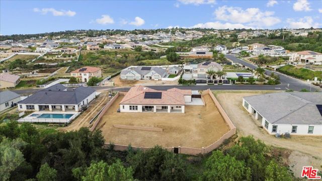 Fully upgraded single-story estate built in 2022, this exceptional residence in Mockingbird Canyon offers 4,010 square feet of modern living on approximately 1.07 acres. Featuring 4 bedrooms, 5 bathrooms, and a dedicated office, the home delivers contemporary design with the scale and setting expected in this sought-after estate community. A wide driveway and gated side access provide flexibility for RV parking or additional vehicle storage. Inside, the open-concept layout is filled with natural light, creating a bright and expansive atmosphere ideal for both everyday living and entertaining. The chef's kitchen anchors the home, highlighted by a dramatic double-thick quartz island, sleek modern finishes, ample cabinetry, generous counter space, and multiple ovens designed to accommodate gatherings with ease. The space flows seamlessly into the main living area, reinforcing the clean, modern aesthetic. The primary suite offers a spacious retreat with a spa-inspired bathroom, while secondary bedrooms are comfortably sized and well-positioned. A dedicated office provides additional flexibility for work or study. Owned solar enhances efficiency and long-term value.The property extends beyond the main yard to a tree-lined creek area along the rear boundary, adding depth and a natural landscape element to the lot. With over an acre of land, there is significant opportunity to design a pool, outdoor entertaining space, or future improvements tailored to your vision. Single-story newer construction on acreage in Mockingbird Canyon a compelling combination of modern design and expansive land.