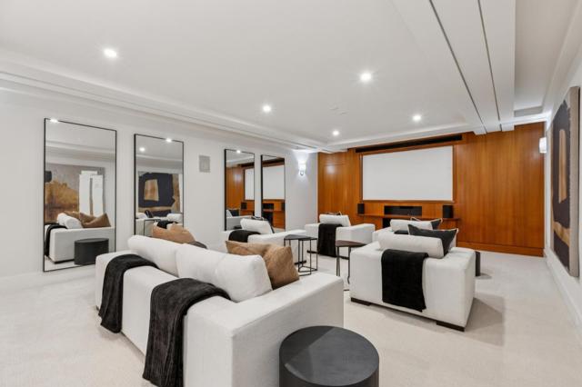 Set beyond a private, gated drive, this striking Mediterranean-inspired estate spans 7,598 square feet on approximately one acre of extraordinary privacy with sweeping canyon and hillside views. At the heart of the design is a long, almost semi-circular loggia, a dramatic colonnaded gallery that offers views and access to both the front courtyard and the backyard simultaneously. Lined on both sides with French doors, this remarkable architectural element allows the home to open completely, making it literally indoor/outdoor and creating a seamless flow of light, air, and landscape throughout. Inside, grand formal living and dining rooms with soaring ceilings open to view balconies and travertine verandas, and the chefs kitchen anchors the main level with limestone countertops, premium appliances, and expansive windows framing the hills. A private bedroom wing includes four bedrooms and an office, culminating in a palatial primary suite with sitting room, steam shower, sauna, and serene terraces. The lower level offers generous recreation spaces, guest accommodations, and media amenities. A spa, fire pit terrace, and landscaped grounds complete this exceptional canyon retreat just minutes from town.
