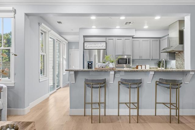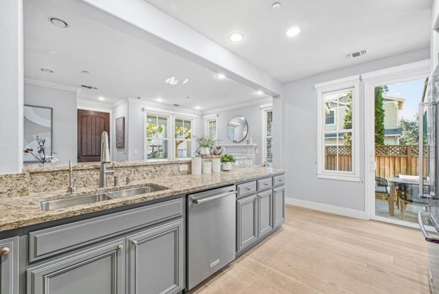 At the best location in the community, this 2008 Craftsman-style CORNER home enjoys abundant natural light and open green space views across from the greens and playground. The inviting wrap-around front porch enhances the indoor-outdoor lifestyle and peaceful setting. The open floorplan seamlessly connects the living, dining, and kitchen areas.The kitchen features a breakfast bar, abundant cabinetry, and stainless steel KitchenAid appliances. Beautiful hardwood floors run throughout the home, with tile flooring in the bathrooms. Recessed lighting and multi-zone central heating and AC provide modern comfort. Upstairs, the spacious primary suite offers a walk-in closet plus an additional hallway closet. The primary bath features dual vanities with a center makeup station, a relaxing sunken soaking tub, and a separate stall shower. 2 additional bedrooms share a Jack-and-Jill bathroom.The private top-floor ensuite serves as the fourth bedroom and offers exceptional flexibility,ideal as a family room, media room, guest suite, or multifunctional space.Conveniently located minutes to Downtown Menlo Park, Burgess Park, Caltrain, Meta, and Downtown Palo Alto. About 10 mins to Stanford Shopping Center and about 10 mins to Stanford University. Around 20 mins to SFO. Make it your home!