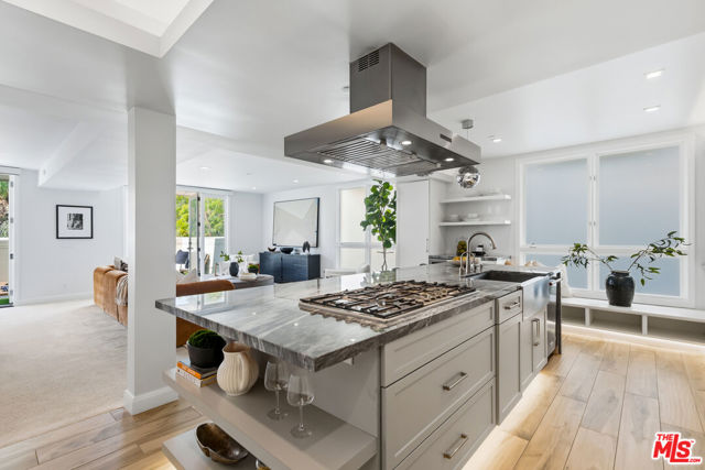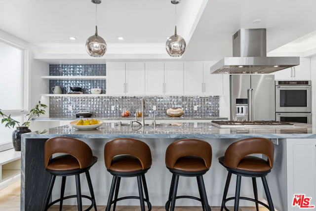 Ideally situated in Westwood, this exceptional two-story penthouse residence spans 1,938 square feet of beautifully re-imagined living, offering expansive interiors, an airy open feel, and serene tree-lined views from three private balconies. Thoughtfully remodeled with a refined, contemporary aesthetic, the home features two spacious en-suite bedrooms and 2.5 impeccably appointed baths, creating a seamless blend of comfort, privacy, and sophisticated design.Filled with natural light, the open-concept living and dining spaces flow seamlessly into a beautifully expanded contemporary kitchen designed for both everyday living and effortless entertaining. Marble countertops and custom cabinetry create a clean, tailored aesthetic, while integrated appliances are thoughtfully concealed to maintain uninterrupted surfaces and a refined architectural feel. A premium Thermador cooktop anchors the space, complemented by abundant storage and streamlined finishes that keep the kitchen both functional and visually striking. Just beyond, a large in-unit washer and dryer adds everyday convenience without compromising the home's elevated design. Electronic remote-controlled window coverings enhance ease and comfort throughout, while three expansive private balconies invite seamless indoor-outdoor living and capture tranquil treetop surroundings.The primary suite serves as a serene retreat, highlighted by a spa-inspired bath with heated floors, a separate soaking tub, and a glass-enclosed shower. The second en-suite bedroom features spacious proportions, ample closet space, and its own private bath, continuing the home's sense of comfort and privacy. An additional powder room is ideally positioned for visitors. A bonus alcove with large built-in shelves can be used as an office. ADT alarm readiness provides added peace of mind. Located within an intimate and quiet 17-unit building, this exceptional penthouse offers both exclusivity and accessibility just moments from UCLA, Beverly Hills, and Santa Monica. A rare opportunity to experience elevated Westwood living in a beautifully re-imagined contemporary home.
