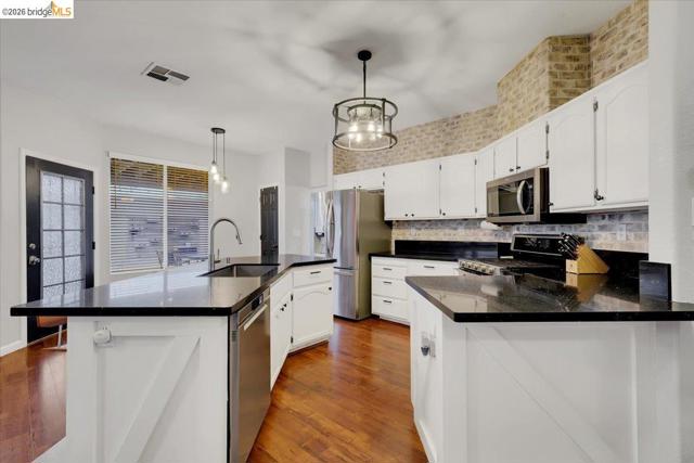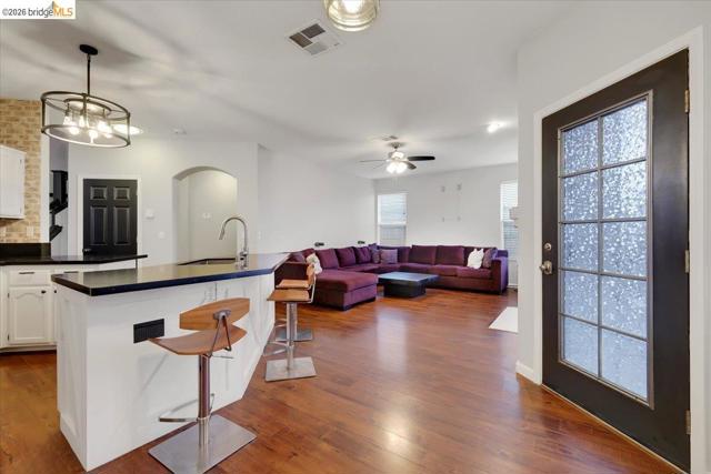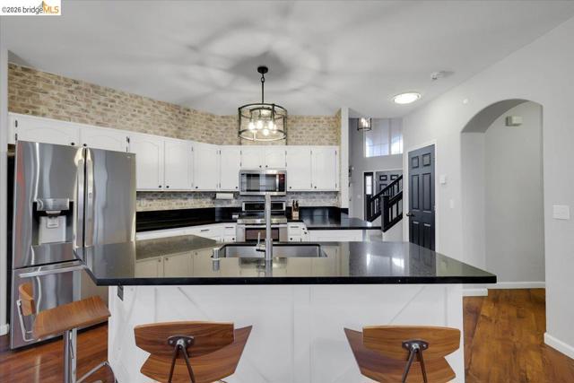 Step into this stunning 4-bedroom masterpiece in Roseville's premier Highland Reserve. From the entry, high ceilings and modern updates create immediate sophistication. The open-concept kitchen features dark quartz countertops, stainless appliances, and ample storage. Plentiful windows highlight dark wood laminate flooring throughout. Every detail is curated for style; including a multi-toned interior, stylistic plumbing fixtures, light fixtures, and ceiling fans. The upstairs features a spacious master bedroom & bathroom with a perfect view of the sunset. The home also has a larger 4th bedroom with a window bench, perfect for reading in the morning sunlight. The 3-car garage and oversized driveway make it ideal for an automobile enthusiast. Enjoy a relaxing, quiet evening mixing a cocktail at the bar and head out under the covered patio with ambient lighting, cozy fire pits, and a 6-person Spa. Centrally located within minutes of top schools, shopping, dining, and freeway access.
