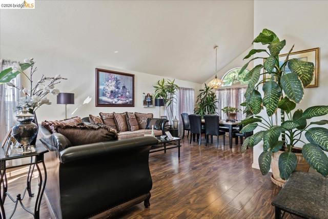 Spacious two-story home offering approximately 2,448 square feet of living space on a generously sized lot. Built in 1994, this residence features a thoughtful, functional floor plan with soaring high ceilings and beautiful hardwood floors throughout the main living areas. The kitchen showcases elegant travertine tile and quartz countertops, and the adjacent laundry room also includes travertine finishes. A large skylight brightens the stairway, creating an inviting sense of space and light. The primary suite includes a walk-in closet, and updated primary bathroom flooring and a new shower enclosure add a fresh, modern touch. Located in a prime location near schools, parks, shopping, and with easy freeway access, this home is ideal for today’s commuters. OPEN HOUSE SUN. 2/22 FROM 1-4PM.