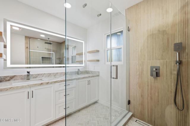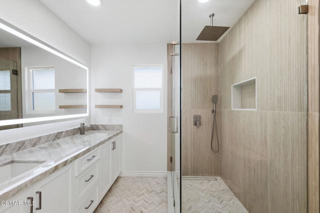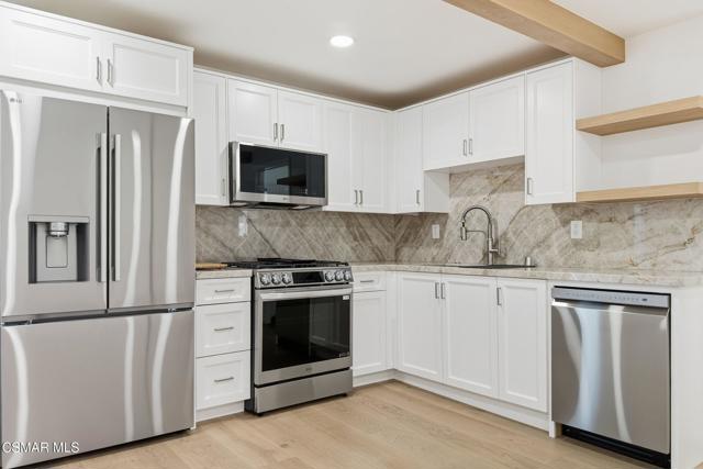 TWO Luxurious Deluxe Single-Level End-Unit Condos for the price of one! Welcome to this rare offering of two freshly renovated, single-level end-unit condos each with its own private entry, kitchen, heating and air, laundry, and bathroom. Thoughtfully designed with spectacular open floor plans, these residences feature expansive living spaces filled with natural light. The main kitchen is a showpiece, boasting a massive quartz island, all-new cabinetry, top-of-the-line appliances, and a walk-in pantry. It flows seamlessly into the spacious living room perfect for entertaining. The main bathroom is a true retreat, complete with a large double vanity, light-up mirror, frameless walk-in shower, and rain shower head with handheld wand. Two additional spacious bedrooms complete this side of the home. The second kitchen offers ample counter space, quartz countertops, a large single-basin sink, and new appliances. It opens to its own generous living area and includes a beautifully remodeled bathroom with a walk-in shower and rain shower head/wand, plus two more bedrooms and a personal stackable laundry. Additional highlights include: All-new flooring throughout Custom blinds, including automatic sliding blinds for the sliding glass doors, fresh paint, updated lighting, and modern plumbing fixtures Enjoy resort-style amenities with a community pool, clubhouse, and 9-hole golf course. All of this, just minutes from shopping, Ventura Harbor, and the beach!