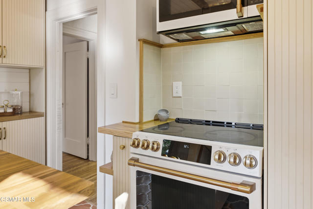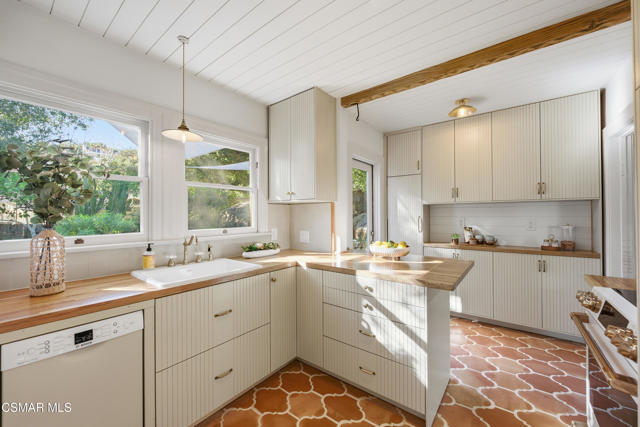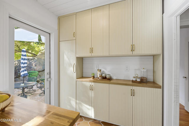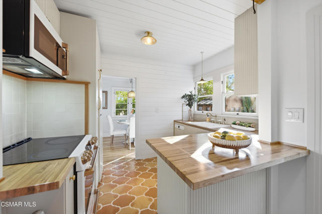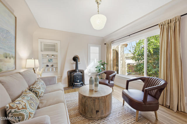 Step into this storybook Spanish single-story casita-lovingly restored, artfully updated and tucked away on its own private street. This is the kind of home first-time buyers dream of finding but rarely do: authentic character, modern upgrades, and a lifestyle that blends nature, convenience and creative inspiration. The home has been painstakingly restored by its craftsman-artist owner. Original casement windows, oak hardwood floors, custom built-ins, and crystal doorknobs preserve the charm, while a wood-burning stove framed in Batchelder-like tile anchors the living space with warmth and history. The home was relocated from South Pasadena to make room for the 110 freeway.The kitchen, fully renovated in 2023, is a showpiece. Brand-new soft-close cabinetry, GE Cafe appliances handmade Saltillo tile floors, Zia tile backsplash, Butcher-block countertops and Restoration Hardware lighting create a space that feels both elevated and timeless.Fresh designer paint inside and out, central air & heat, tankless water heater (2021), upgraded electric panel (2022), and newly insulated roof (2024) ensure comfort and peace of mind. The bathroom, reimagined in 2024, feature Kohler fixtures, bespoke lighting and thoughtful built-ins.Outdoors, a large lot is your own private sanctuary with drought tolerant landscaping, lemon trees, majestic oaks and ancient cacti. A custom cedar office (electricity & air) is an ideal detached workspace or artist studio.The location is the perfect balance of peaceful retreat and city access with Westfield Topanga Mall and The Village minutes away along with the Commons in Calabasas, and hiking trails right outside your front door.At an exceptional price of $700,000, this is more than a home, it's a lifestyle, a retreat and a rare opportunity to own a piece of restored Spanish charm with modern livability.