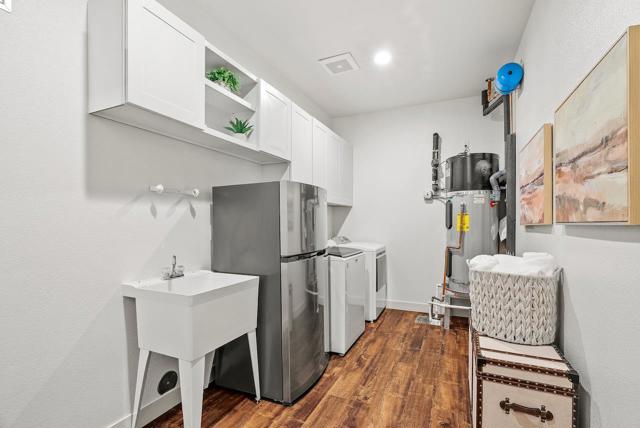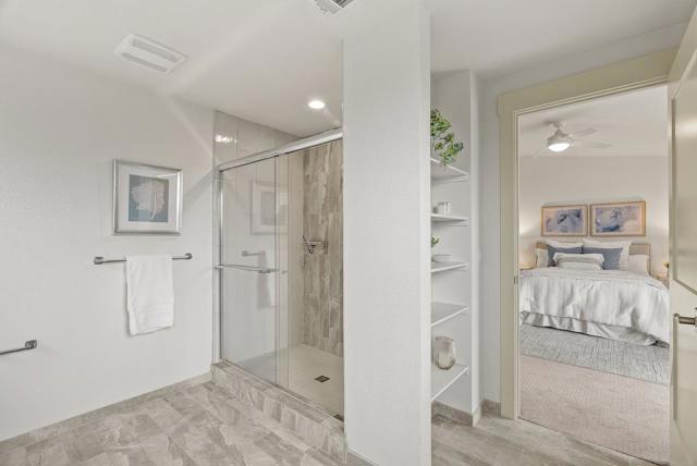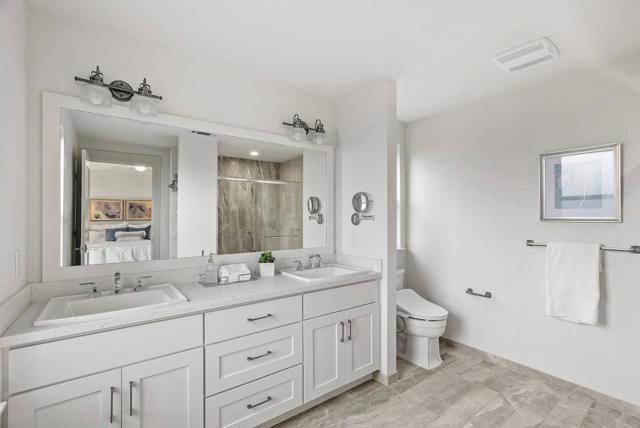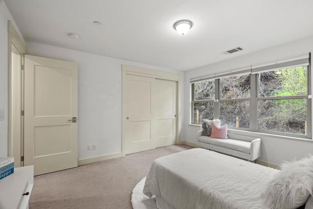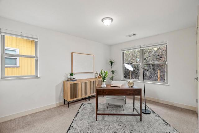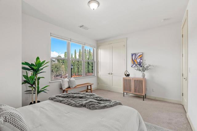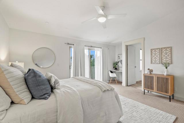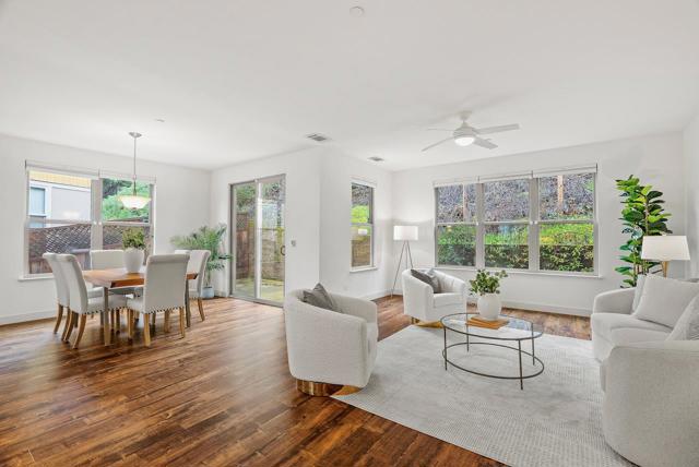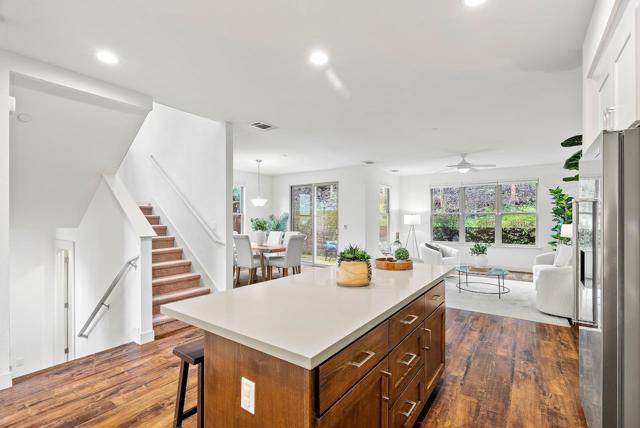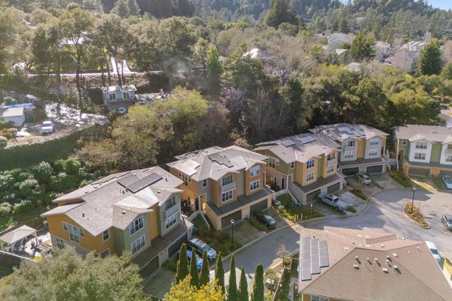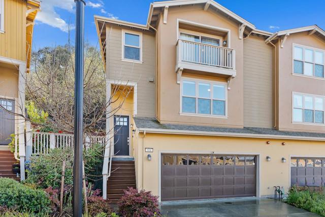 Absolutely fabulous and shows like it has never been lived in! This spacious end-unit home features soaring ceilings and is bathed in natural light from numerous high windows and skylights. Ideal floor plan with one bedroom and full bath on the main level, plus a luxurious Primary Suite and two generously sized guest bedrooms upstairs. The stunning kitchen offers a large quartz slab island and countertops, abundant cabinetry, and stainless steel appliances, all flowing seamlessly into the Great Room with combined living and dining areas. Step outside to your private, fenced patio, perfect for Al Fresco dining and relaxing. Upstairs, the Primary Suite is a true retreat with a large walk-in closet, spa-like en suite featuring a double walk-in shower, and a private balcony. A spacious 2-car garage and dedicated mud room/laundry room provide excellent storage and functionality. There is also solar, a water softener and reverse osmosis water filtration system. Located near award-winning schools and just minutes to shopping, the beach, and Silicon Valley. A true gem!