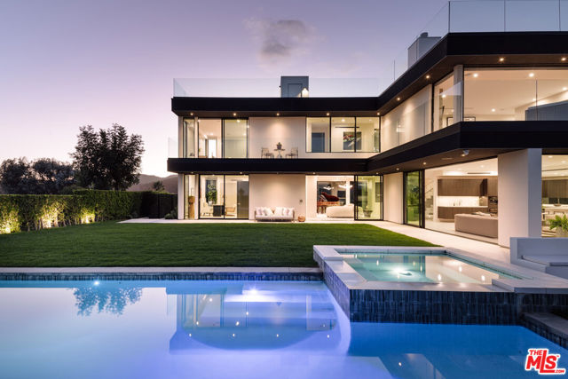 Experience modern California luxury in this architecturally stunning Brentwood estate, completed in 2020. This newer construction home features 5 bedrooms, 5.5 bathrooms, and approximately 6,468 sq ft of refined living space set on a 9,724 sq ft lot with breathtaking panoramic views stretching from the Pacific Ocean to Downtown Los Angeles. Designed for contemporary living, the open-concept floor plan showcases soaring ceilings, floor-to-ceiling glass walls, and designer finishes throughout. The gourmet chef's kitchen offers top-of-the-line appliances, sleek custom cabinetry, and a statement island ideal for both entertaining and everyday life. Luxury amenities include a private movie theater, temperature-controlled wine cellar, and a 1,600sqft. rooftop deck capturing 360-degree views of the city and coastline. Outdoors, enjoy resort-style living with a sparkling pool and spa, built-in BBQ, and fire pit lounge perfect for hosting gatherings under the California sunset. Located in one of Brentwood's most desirable neighborhoods, this modern estate is just minutes from scenic hiking trails, Santa Monica beaches, and the heart of the Westside. A rare opportunity to own a move-in ready luxury home in Los Angeles, offering the perfect blend of elegance, comfort, and iconic Southern California lifestyle.