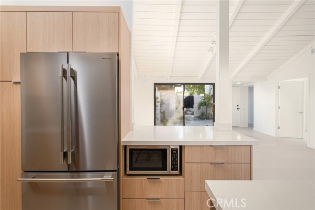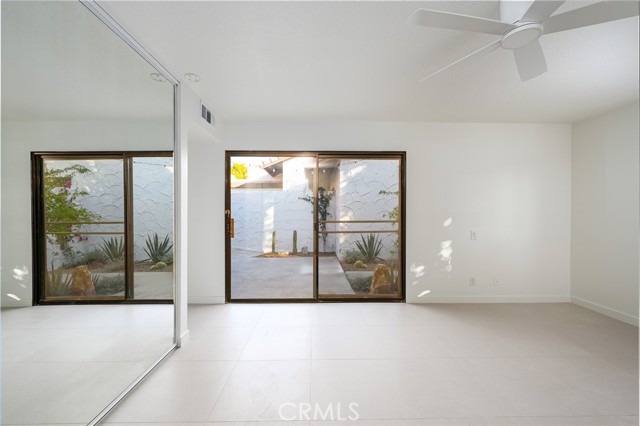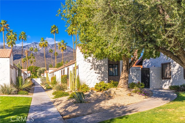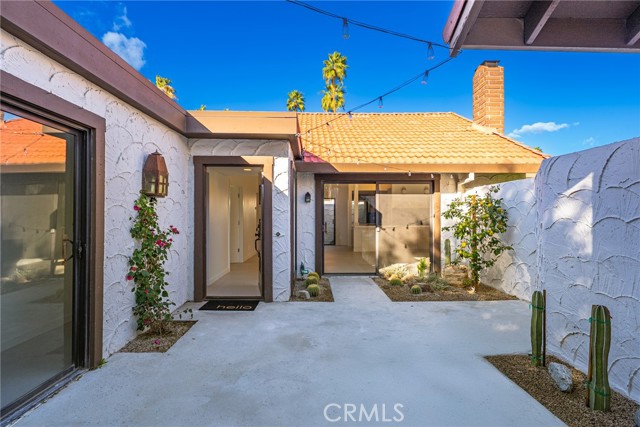 Experience a level of design and finish that rivals most multimillion dollar homes in Palm Springs. Situated in arguably the best location within Canyon Sands, this meticulously renovated 3-bedroom, 2-bathroom (or 2-bedroom plus den) floorplan offers the privacy and feel of a single-family home, complete with no shared living space walls, a private walkway, and an attached two-car garage. The interior is a masterclass in modern luxury, featuring large-scale porcelain tile, new dual-pane windows, and designer touches including Zia Tile, Emtek hardware, and a classic Nelson Bubble pendant. The gourmet kitchen has been reimagined from top to bottom with custom cabinetry, quartz countertops, and premium KitchenAid appliances. Flowing seamlessly from the kitchen, the living area impresses with vaulted wood-beam ceilings, a cozy fireplace, and a custom bar with floating shelving—the ultimate setting for entertaining. Both bathrooms are spa-like retreats, updated with walnut vanities, quartz tops, and high-end Hansgrohe and Signature Hardware fixtures. The two private patios have been freshly landscaped and offer the perfect place to relax or entertain. Canyon Sands spans 33 lushly landscaped acres with tennis, pickleball, saunas, and seven sparkling pools and spas. HOA amenities include high speed internet, premium TV, water, sewer, plus grounds and roof maintenance. Walking distance to the famed Parker Palm Springs and just moments from spectacular shopping, dining, and hiking. Rarely does something this spectacular come available, especially in this price range. You don’t want to miss it!