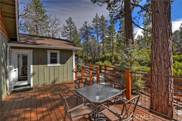 Welcome to 42527 Willow Avenue, your gateway to the San Bernardino National Forest ~ Tucked away in the Lower Moonridge neighborhood of Big Bear Lake, this turnkey, 3-bedroom, 2-bathroom custom home has a lot to offer ~ A perfect mountain getaway, this spacious retreat features a large open-concept living area ideal for unwinding after a day on the slopes, or the trails that are right out your back gate ~ Natural light pouring through large windows, framing peaceful forest views ~ Backing directly to the San Bernardino National Forest, the home offers immediate access to hiking and biking trails ~ A serene, wooded setting gives the feeling of seclusion ~ Step outside onto the rear Trex deck to enjoy summer evenings, snowy mornings, and tranquil nature views in every season ~ The kitchen features granite countertops, and flows seamlessly into the main living and dining areas, creating an ideal layout for entertaining and everyday living ~ Comfort and functionality are elevated throughout this home ~ Gas fireplace in the dining room ~ Napoleon GD 20N cast iron stove in the master bedroom ~ Forced heating and air conditioning ~ A 200-amp electrical service with surge protector ~ Dual-pane windows throughout ~ Italian tile flooring with wood grain look and feel ~ A skylight in the master bathroom ~ French doors from the master bedroom to the rear deck ~ Tankless water heater ~ Copper Plumbing ~ Drip irrigation for landscaping ~ Attached 2-car garage pre-wired for two EV chargers ~ Perfectly located just minutes from Bear Mountain Ski Resort, Snow Summit Ski Resort, the Bear Mountain golf course, Big Bear Lake, the Big Bear Alpine Zoo, and the Moonridge Corridor ~ A short ride to the Big Bear Lake Village for shopping, dining, and year-round events ~ This exceptional property is ideal for full-time living, a second home, or your next investment in the mountains ~ Dont miss 42527 Willow Ave.