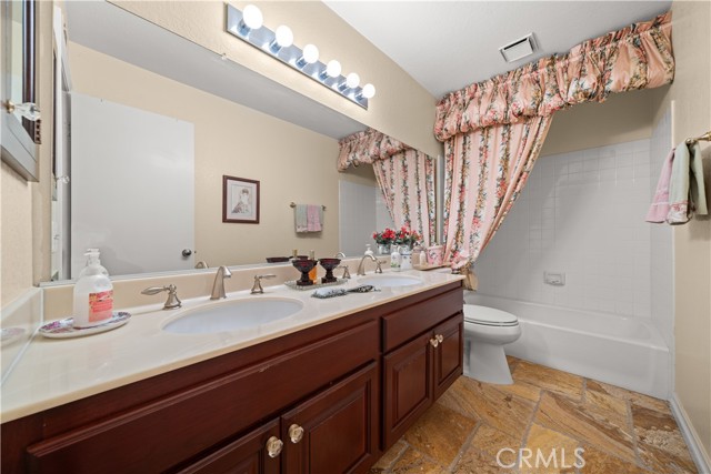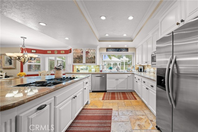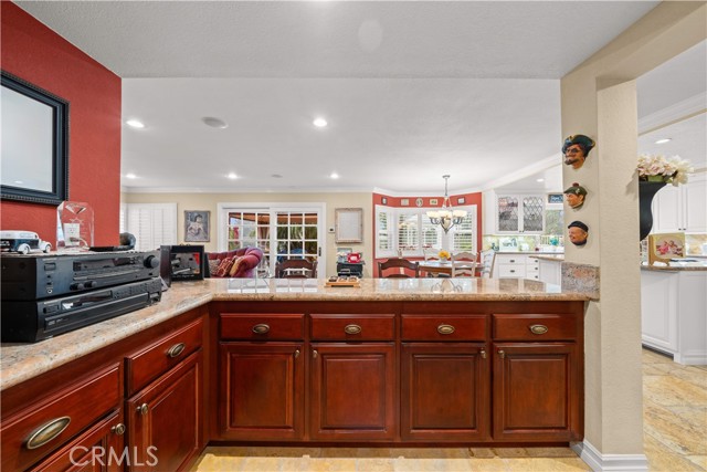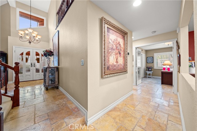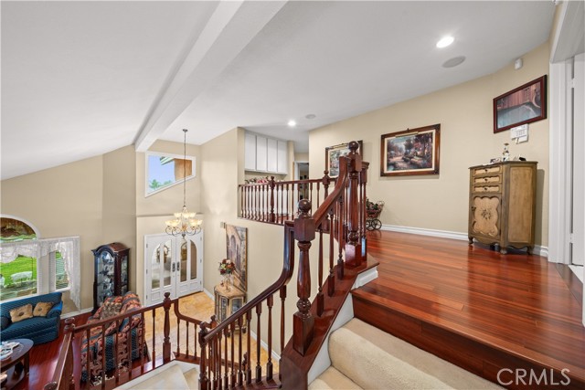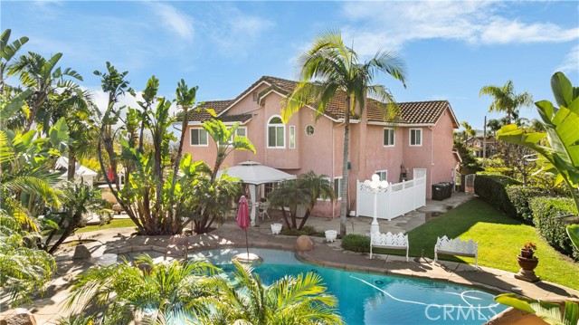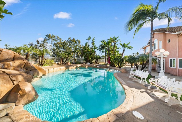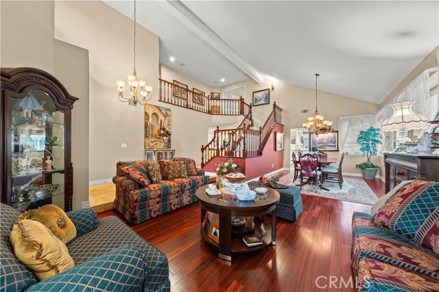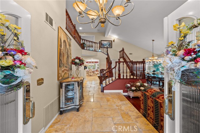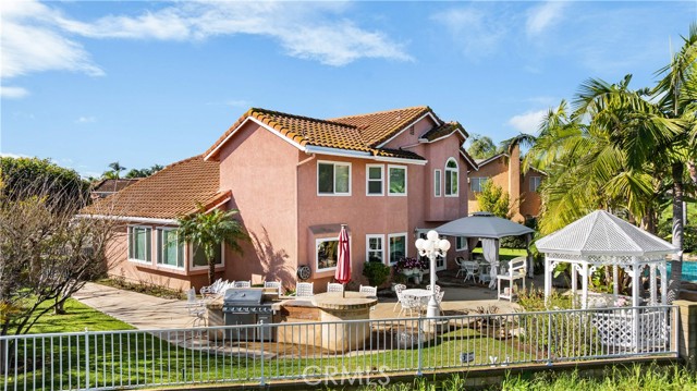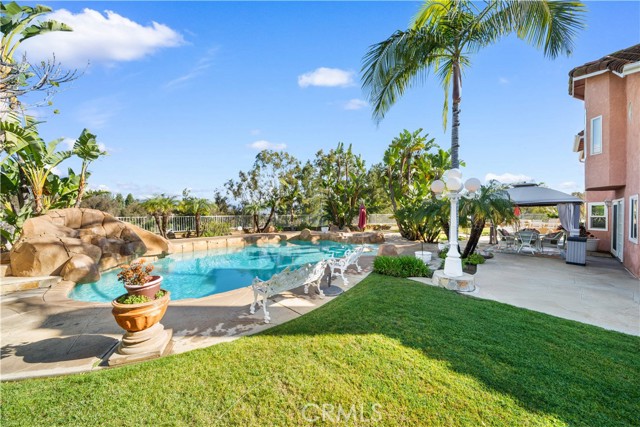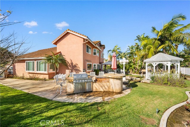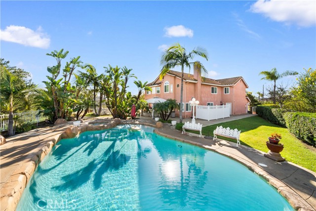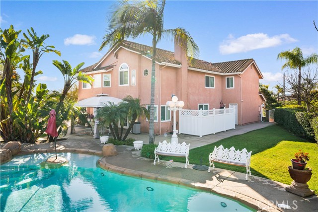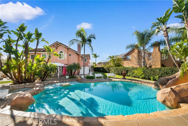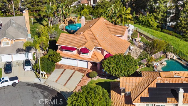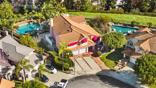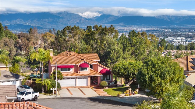 Location! View! Large lot! Located in one of Chino Hills’ most desirable neighborhoods, this beautifully upgraded property with 4 bedrooms, 3 bathrooms, (1 bedroom 1 bathroom downstairs) plus a bonus room upstairs, 3-car garage. With 3,017 sqft of elegant living space on a 12,500 sqft lot, open-concept layout designed for both comfort and style. Grand double-door with glass panels, soaring high ceilings and abundant natural light in living room. Remodeled kitchen featuring refaced white cabinets, granite counter tops, center island, stainless-steel appliances, including built-in microwave, double ovens. Family room with mini-bar and fireplace framed by a custom wood mantel. Large primary bedroom with retreat area. Primary bathroom with dual sinks, bathtub, separate shower.. The upstairs spacious bonus room is perfect space for a home office, media room, or potential fifth bedroom. Other features include: 3 awnings in the front windows, travertine flooring at entry, family room downstairs bedroom and bathrooms, hardwood in living room, upstairs hallway, and bonus room, recessed lights, custom chandeliers, custom window coverings, wood shutters, crown moldings, surrounding sound system, upgraded Milgard double-pane vinyl windows. Step outside to a private backyard oasis where a gazebo, BBQ island, sparkling pool & spa, professional landscaping, and beautiful mountain and city light views create the ultimate setting for entertaining or peaceful retreat. Enjoy a rare combination of scenic beauty and everyday convenience location. Excellent Chino Hills schools, walking distance to California Distinguished Rolling Ridge Elementary and Canyon Hills Junior High, minutes from Ayala High, local parks, and shopping centers. In a small peaceful and quiet cul-de-sac street. Homes with this level of finish, space, and location rarely come available. Don’t miss this exceptional opportunity to own a turnkey residence in the heart of Chino Hills.