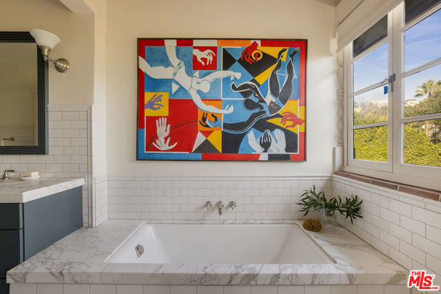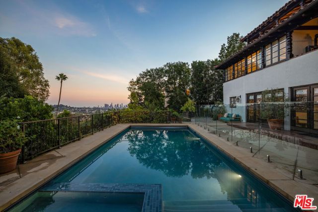 Beautifully restored Spanish Colonial w/classic original details & tasteful,well crafted updates. Located on one of Los Feliz's most sought after streets,originally built for silent film star Bessie Love, this 1925 beauty perfectly captures the craftsmanship & character that define the special homes of Los Feliz. Beautiful, sun filled entry to large,comfortable living room w/fireplace,surrounded by verandas, viewing out over downtown L.A. and peaceful hillsides. Dining room w/French doors and sweeping views. Stunning cooks kitchen w/Viking and Subzero appliances, Carrara countertops, opening to terrace, perfect for dining under the stars. Spacious primary bedroom w/beam ceiling, serene views, and elegant bath. Several additional bedrooms (en-suite), that open to balcony & private patio. Downstairs den + generous wine cellar. Separate guesthouse/cabana w/bath & Euro style kitchen. Spectacular (uber private) entertainers yard w/saltwater pool and large spa, bbq area, al fresco dining moments,and flat grassy yard & play area. Meandering paths to park-like grounds (nearly 20,000 sq foot lot!) and tranquil privacy, plenty of room for ADU or guest cottage. Rarely do we see the past and present woven so seamlessly and elegantly. The quintessential Los Feliz home awaits!