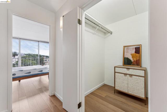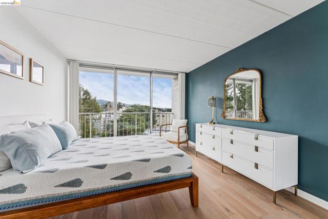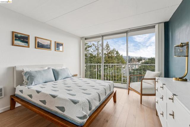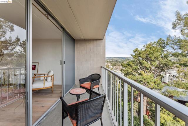 As soon as you enter this 8th floor unit, you’ll be taken with the lush and tranquil views. Floor-to-ceiling windows in every room look out on redwood trees and the Oakland hills. Relax and work at home in rooms with plenty of light. Enjoy the easy indoor-outdoor flow to a spacious, private balcony where you can relax with your morning coffee or evening wine. You’ll find tons of closets, including a huge walk-in closet that could be used as an office. Engineered wood floors add warmth to this tranquil living space. The condo comes with a deeded parking place in a gated garage and a separate storage space. All the while you are only 3 blocks to Piedmont Avenue and everything the neighborhood has to offer. Want a special occasion dinner in a fine dining restaurant? Want an excellent meal in a casual restaurant? Piedmont Avenue has it all: restaurants, cafés, bookstores, a movie theater, grocery stores, gift shops, transportation, and more! Live close to everything then come home and be a world away.