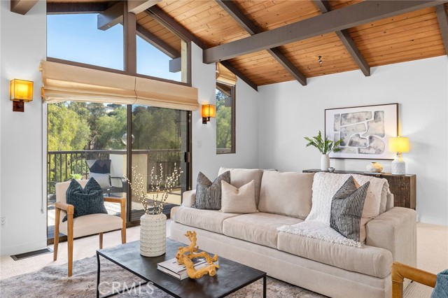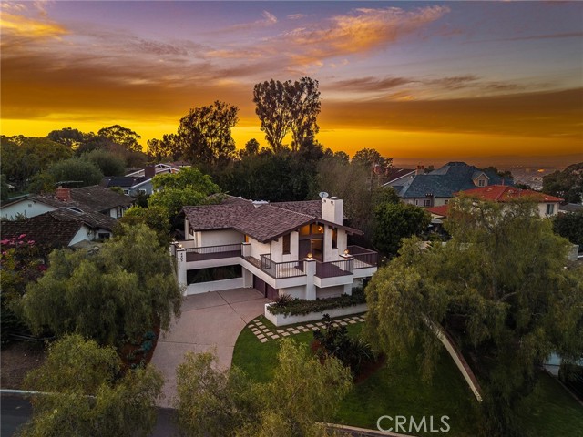 Discover a property defined by a thoughtful study in architectural harmony. Elevated on the lot to take advantage of the natural contours of the land, this mid-century modern inspired Valmonte residence offers a seamless balance of indoor and outdoor living. Defined by soaring vaulted ceilings and floor-to-ceiling windows, the home features several distinct indoor and outdoor living areas. The main living room is bathed in natural light, centered around a wood-burning fireplace, and opens to a balcony with views of twinkling city lights at sunset. The well-appointed kitchen overlooks a private outdoor dining patio and flows effortlessly into the formal dining room. A separate family room opens to two additional outdoor spaces, including a large deck and a flat, grassy yard surrounded by mature landscaping and a variety of citrus trees. The oversized lot offers ample room for a pool; and don’t miss the hot tub tucked away in its own private corner of the property. When the day is over, the primary suite is the perfect space to unwind, featuring a spa-inspired bath with a walk-in shower, soaking tub, dual vanities clad in natural wood, and direct access to a roomy walk-in closet. The two additional guest bedrooms receive plenty of filtered light and are generously sized. Delightful surprises await on the lower level: Surprise #1- A dedicated private office, the perfect spot to work undisturbed; Surprise #2 - an oversized 2-car garage with room for all your toys; and Surprise #3 - a built-in storage area because you can never have enough storage space! Equipped with air conditioning, rich hardwood floors, and refined details at every turn, this home is perfectly situated to enjoy Valmonte’s idyllic weather. With quick access to the best of the South Bay and close proximity to the PVE trails and the PV Golf and Tennis Clubs, this move-in-ready home is a rare opportunity that maximizes its spectacular setting.