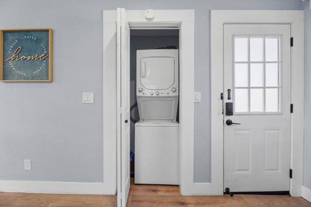 Welcome to a rare opportunity in Central San Jose a warm and inviting home offering comfort and room to grow. This beautifully remodeled 2-bedroom, 2-bath residence features 996 sq ft of living space on a 5,510 sq ft lot, blending modern updates with everyday ease. Remodeled in 2024, the bright open-concept layout creates a natural gathering space. The living and dining areas flow together with a casual dining bar, while large windows fill the home with natural light. The updated kitchen includes solid surface countertops, range, dishwasher, refrigerator, and hood. Wood-style flooring runs throughout, and central A/C ensures year-round comfort. An in-home washer and dryer add convenience. The spacious backyard offers room to play or relax outdoors. A basement bonus room provides flexible space for an office, playroom, or storage. Zoned R2 with added flexibility for future possibilities (buyer to verify). Located blocks from light rail, shopping, dining, and major commute routes. Close to Willow Glen schools and nearby tech campuses, including the future Google development. Move-in ready and well-located, this home offers comfort, convenience, and space to grow.