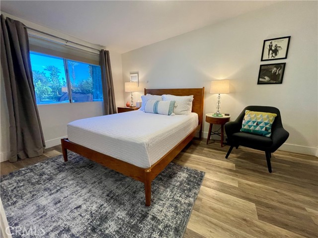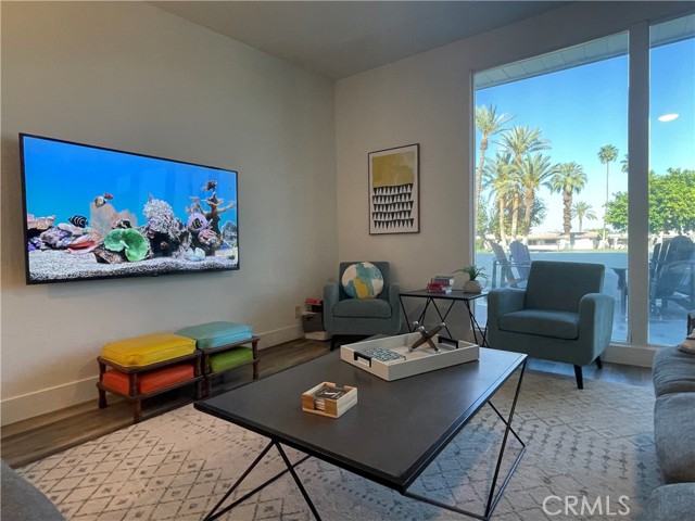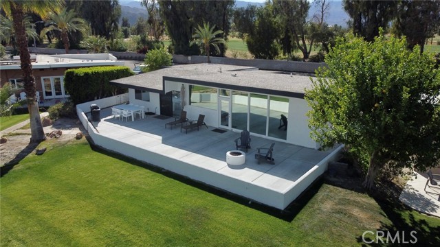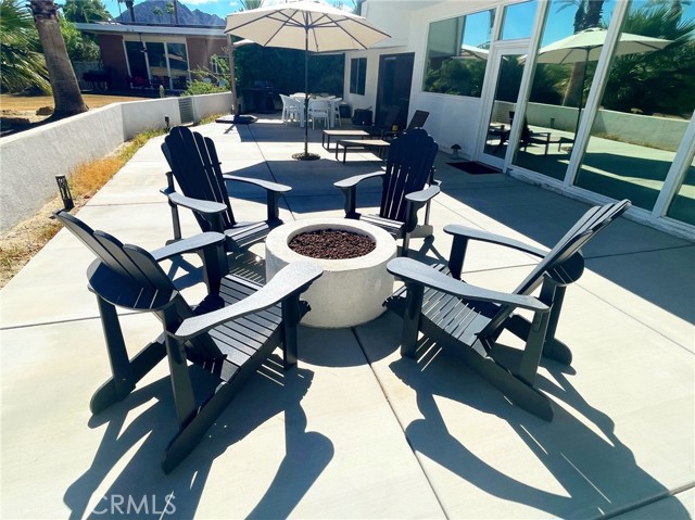 Sun-drenched mid-century modern retreat just steps from the iconic Indian Wells Tennis Garden. This single-level 3-bedroom, 2-bath home is bathed in morning light through dramatic floor-to-ceiling windows spanning the kitchen, dining, and family rooms — seamlessly blending indoor and outdoor living. Currently operating as a successful Airbnb with reservations secured through April, this property offers immediate income potential. Buyer may elect to honor or cancel future bookings. Sold fully furnished for a true turnkey experience. Major system upgrades completed in 2021 include a new tankless water heater, new AC system, and updated PEX plumbing — offering modern efficiency and peace of mind. The private rear patio with fire pit creates the perfect desert lounge setting, while the unique community layout places the rear of each home facing an expansive greenbelt with a sparkling community pool, palm and fruit trees, and wide open views — no direct rear neighbors. Minutes from world-class golf, upscale shopping and dining, and the legendary Coachella Valley Music and Arts Festival and Stagecoach Festival, this is desert living at its most stylish — and profitable.
