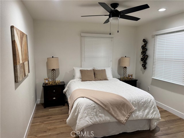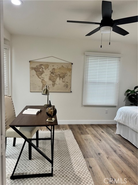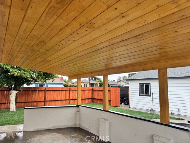 Welcome to 6556 San Vicente Street in Paramount, CA. This beautifully renovated single-story home has been thoughtfully remodeled from top to bottom. Upgrades include brand-new plumbing, electrical wiring, electrical panel, new dual-pane windows, new laundry area, new drywall, HVAC system, and a stunning new kitchen featuring stainless steel appliances and sleek quartz countertops. The home offers two spacious bedrooms plus an office and one and a half bathrooms. A charming, inviting covered patio features a warm wood-plank ceiling, spacious concrete flooring, and a private fenced setting ideal for outdoor entertaining. Sitting on a generous corner lot, the property also features a two-car detached garage and new wood fencing, offering both privacy and functionality. A true turnkey opportunity with modern finishes and pride of ownership throughout.
