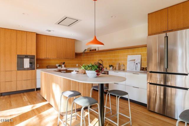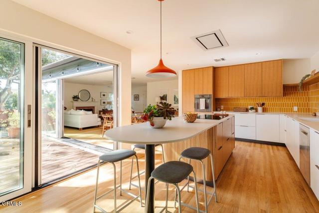 This elegant 3-Bed 2-Bath home boasts a stunning open floorplan and is located in the ever-popular Historic Highlands. With guidance from an architect, the owners thoughtfully remodeled and expanded the floorplan, creating this exceptional home which they have so enjoyed! The expansive sliders in the living room wrap around the corner creating a bright, refreshing living area that seamlessly flows through the kitchen and to the private outdoor space. The kitchen is simply breathtaking with graceful warm tone-on-tones, contrasting textures and quality finishes. The primary suite is spacious and features a luxurious bathroom as well as French doors that open out to a generous backyard featuring a mighty Ash tree. Two other spacious bedrooms and a tastefully remodeled bath completes this floorplan. This home also features many upgrades including a newer roof, 200amp electrical panel & upgraded wiring, a heat pump inverter conditioning system, heat pump water heater, insulation in the walls & attic, newer decking and drought tolerant landscaping with a drip irrigation system!