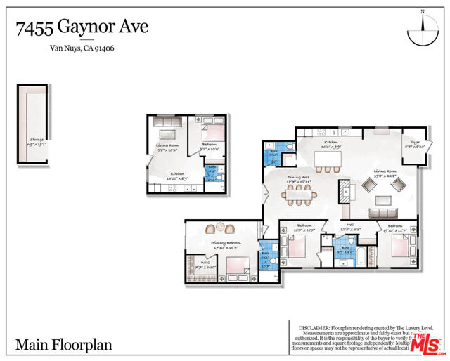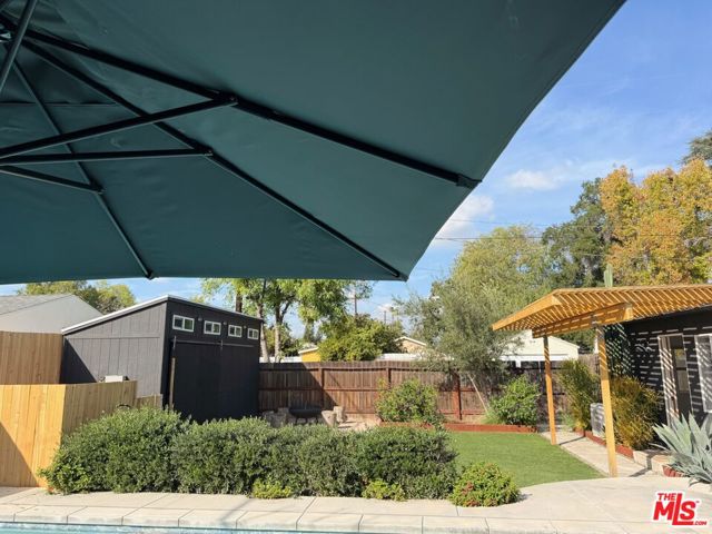 Thoughtfully upgraded and move-in ready, this corner-lot home + ADU (4 bed + 4 bath in total) offers flexible living and effortless indoor-outdoor flow. The main residence (approx 1,609 sq/ft) features 3 bedrooms and 2.5 baths, beginning with a defined entry that opens to a bright, open-concept. The dining space is subtly separated, with the kitchen serving as the central hub, creating distinct zones while maintaining a connected feel. The two secondary bedrooms flank the full bath and laundry, while the primary suite sits privately two steps down to the rear of the home with an ensuite bath, walk-in closet, built in wardrobe and sliding doors to a pergola-covered, poolside patio. Improvements inside and out reflect care and intention, resulting in a clean, modern aesthetic that remains warm and livable. The private backyard retreat includes a pool, multiple entertaining areas, a built-in chef's station with Blackstone cooktop & gas grill, and two grassy areas, one boasting a fire pit. At the rear and side of the lot are two storage/workshop spaces, one open style and the other more sizable and enclosed with a sliding barn door. Lastly, the detached 1-bedroom ADU (approx 300 sq/ft) styles both modern kitchen and 3/4 bath, offering excellent versatility for guests, extended family, or potential income and includes its own outdoor deck area, with the potential to reconfigure a private entrance. All set on a generously sized lot with mature landscaping, pool, decks, & - patios with truly thoughtful separations of spaces - this home delivers privacy, comfort, and versatility in a desirable Lake Balboa setting.