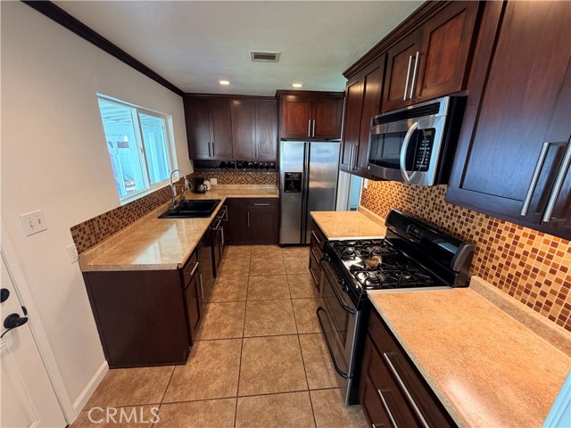 This home is what your buyer(s) have been looking for. Come and see this fabulous home that is located on a small residential street near all conveniences that has 3 good sized bedrooms, a good sized living room, dining area, well sized kitchen, a large front and rear yard, and the home has been updated from the inside/out. This great property has a newer roof installed in 2025, hardwood flooring throughout, new interior paint, an updated kitchen, remodeled bathroom, updated recessed lighting and lighting fixtures throughout, numerous built-ins throughout the home, newer installed base and crown moldings, a newer water heater installed in 2024, and much more. This great home has been updated in detail and has been maintained very well. The rear yard has new sod and a sprinkler system that is newly installed and has a large covered patio that is great for relaxing and entertaining. At the front driveway there is parking for several vehicles and the garage has direct access into the home. The garage can be a good sized ADU and the large rear covered patio can be extended into a large recreation room, bedroom, or what ever you may need it for if more living area is needed. Show this great home today!