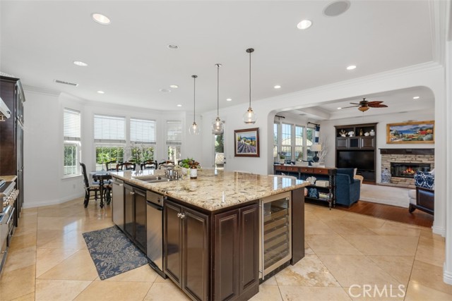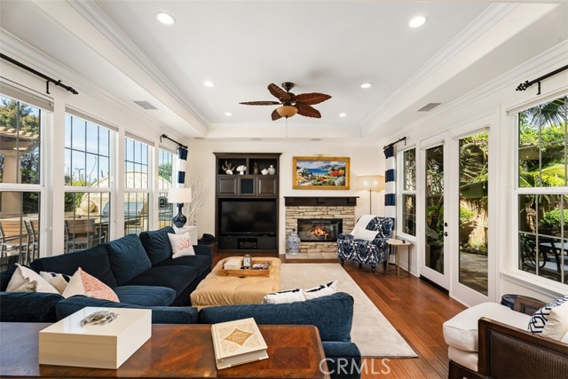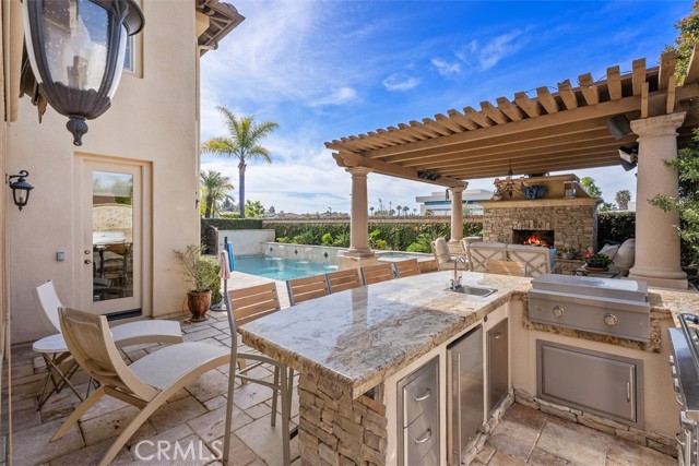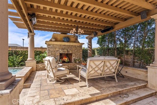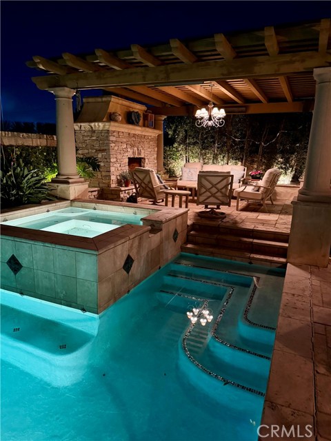 Welcome to refined luxury living in the prestigious guard-gated community of Armstrong Ranch. Ideally located in the heart of South Coast Metro, this exceptional residence is just moments from South Coast Plaza, renowned dining, upscale shopping, and world-class performing arts. Situated on one of the community’s most desirable premium lots, this stunning property features the largest floor plan in Armstrong Ranch and offers a true resort-style backyard designed for both grand entertaining and peaceful relaxation. The expansive outdoor retreat showcases a sparkling pool and spa, built-in barbecue, granite-topped island with seating, cabana with fireplace, separate spacious courtyard, and remarkable privacy — creating your own personal oasis. Inside...vaulted ceilings and an abundance of natural light illuminate the home and more than five bedrooms and four-and-a-half baths of thoughtfully designed living space. Elegant upgrades include crown molding, custom built-ins, recessed lighting, oversized baseboards, multiple fireplaces, and beautifully updated finishes throughout. The main level features a bedroom, along with a private office or library accented by custom built-ins. Formal living and dining rooms each offer their own fireplace, while the expansive family room opens seamlessly to the chef’s kitchen. The kitchen is appointed with a large granite island with pendant lighting, abundant cabinetry, and premium GE Monogram appliances. On the second level, the grand primary suite serves as a luxurious retreat, complete with a sitting area and fireplace, spa-inspired bath with dual vanities, jetted soaking tub, separate shower, and a generous walk-in closet. An adjacent bonus room provides flexible space ideal for a gym, office, or custom wardrobe room. Three additional bedrooms complete the upper level — one en-suite and two connected by a Jack-and-Jill bath — along with a conveniently located laundry room. The garage offers custom storage cabinetry and an epoxy-coated floor for a polished finish. Life within Armstrong Ranch feels like a private resort, with community amenities that include a pool, spa, tot lot, and picnic areas — all set within a beautifully maintained 24-hour guard-gated enclave. With easy freeway access and just minutes from John Wayne Airport and Newport Beach, this exceptional residence offers the perfect blend of elegance, comfort, and prime Orange County living. A rare opportunity — and truly a must-see.