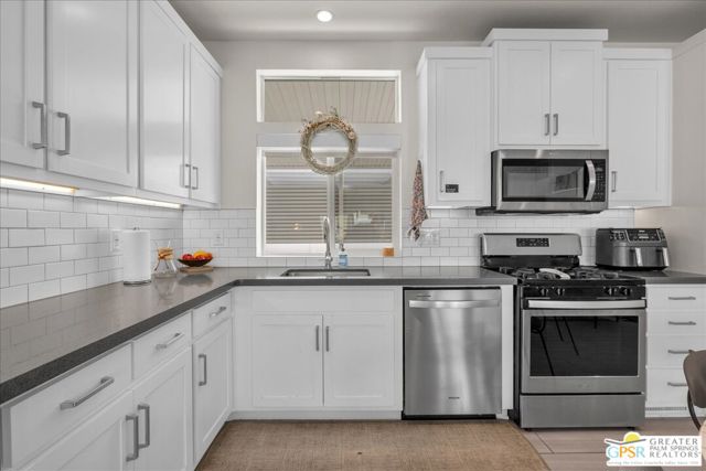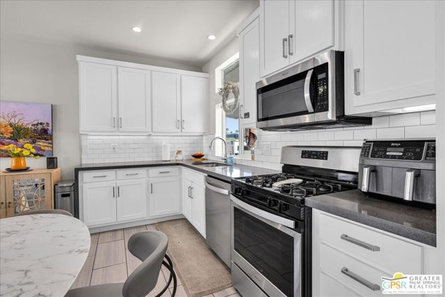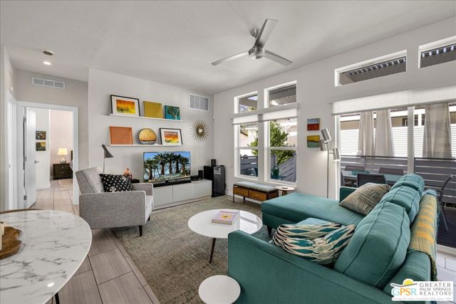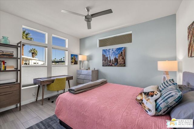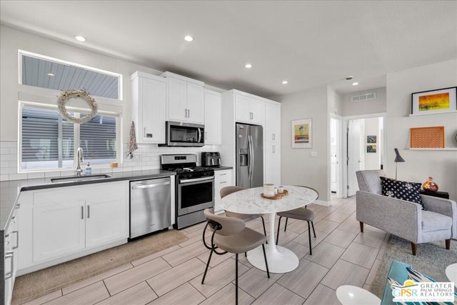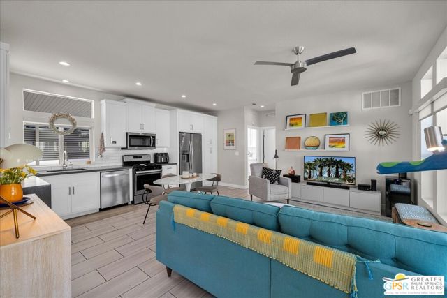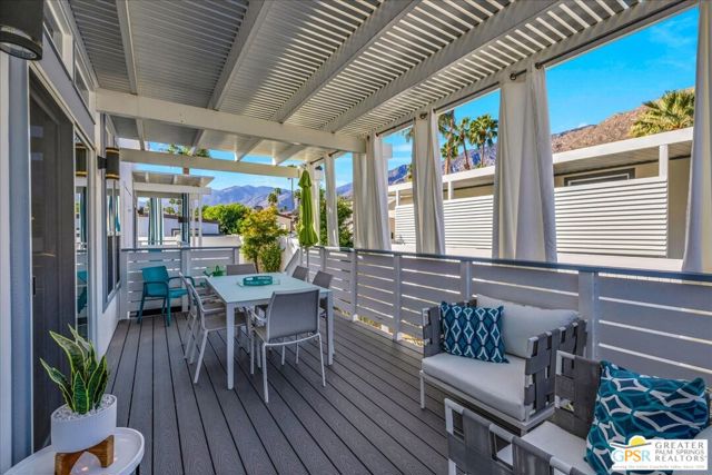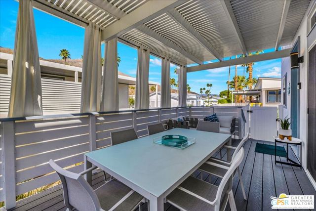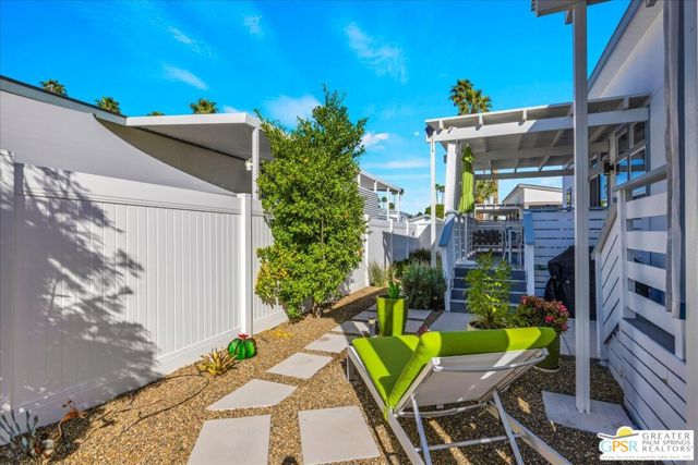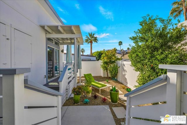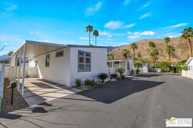 Rarely Available Parkview Model at Palm Canyon Mobile Club. Opportunities like this don't come around often. This highly sought-after **Parkview Model** at Palm Canyon Mobile Club is one of the larger floor plans in the community, offering generous space and effortless desert living. Step inside to a spacious, open-concept living area that flows seamlessly to a large west-facing covered deck, perfect for embracing Palm Springs' signature indoor-outdoor lifestyle. Whether you're enjoying sunset cocktails or morning coffee, this expansive outdoor space becomes a true extension of your living room. The thoughtfully designed layout places two large bedrooms on opposite sides of the home, creating ideal privacy for owners and guests alike. A dedicated laundry room adds everyday convenience, while the kitchen impresses with quartz countertops, abundant cabinetry, and ample storage. Outside, you'll love the fenced yard, perfect for gardening, relaxing, and giving your fur babies room to roam. Located just a short stroll from the community pool and clubhouse, this home offers both tranquility and easy access to amenities. Palm Canyon Mobile Club delivers resort-style living with a gym, pickleball courts, billiards room, auditorium, firepit, outdoor BBQ area, and not one but two dog parks for your desert lifestyle enjoyment. This is a rare chance to own one of the community's most desirable models. Don't miss it. Monthly space rent is $1,350/month.