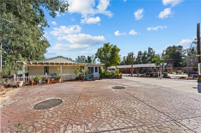 A home to make your own. Country charm meets everyday convenience in this truly one-of-a-kind property waiting for someone to make it their own. Offering nearly an acre of flat, fully usable land — all just minutes from shopping, schools, and freeway access. A gated entry welcomes you in, leading down a long private driveway to a massive covered carport with room for multiple vehicles. Privacy, space, and versatility are the stars of this show. Inside, this unique manufactured home lives like multiple homes in one. Step through two bonus rooms that open to the first living area, complete with a cozy fireplace, kitchen, dining space, and laundry room. The primary bedroom is thoughtfully positioned on the opposite end from the two secondary bedrooms and full bath, creating a private retreat feel. Continue through an additional laundry area into a second updated kitchen with its own dining space, half bath, and an expansive living room featuring dual ceiling fans. Tucked away is another oversized primary suite with a walk-in closet and an attached updated bathroom. Upstairs offers even more opportunity with an unfinished living space that includes a bedroom, bathroom, and a former kitchen area — ideal for multi-generational living, rental potential, or creative expansion. An enclosed patio sits just off the second story, adding even more flexibility. The property also features a junior ADU with a bedroom and bathroom — perfect for guests, extended family, or additional income. Out back, the nearly acre-sized lot truly shines. Enjoy a lush garden, enclosed chicken coop (currently home to ducks, chickens, and geese), and a large grazing area where three goats are happily residing. There’s even rear road access for added convenience. If you’ve been looking for space, versatility, and country living without sacrificing convenience, this property delivers in a big way. Don't miss out!!!