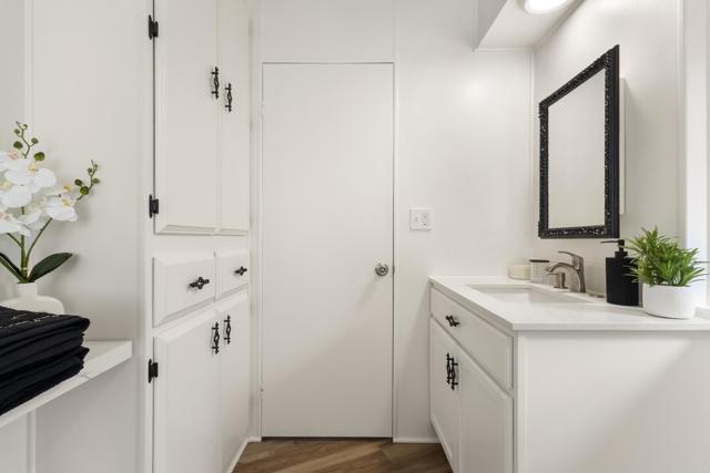 Welcome to this beautifully renovated 2-bedroom, 2-bathroom 1,249sqft home, perfectly situated in a vibrant all-age community. From the moment you step inside, you’ll appreciate the thoughtful updates and modern touches that make this home truly move-in ready. You’ll find brand-new flooring throughout, fresh paint inside and out, updated fixtures & hardware, and all new interior doors. The eat-in kitchen has freshly painted cabinets and new hardware, giving it a bright and contemporary feel. A full-size laundry room adds everyday convenience, while the outdoor storage shed provides plenty of space for tools, hobbies or seasonal items. Outdoor living is a highlight with a large raised patio that’s perfect for relaxing, plus a lower concrete patio all with a smooth flow to and from the kitchen, making entertaining family and friends effortless. Covered parking is included for year-round convenience. The all age community offers a sparkling pool, basketball court, a clubhouse, and optional RV/boat parking for those who need it. This home is only a short walk to the community pool. The space rent will be $772 for the new owners per the management company plus additional utilities. Conveniently located; shopping & restaurants in all directions. Easily hop onto HWY 78 for an easy commute to the beach and beyond! Don’t miss this opportunity to own a beautifully updated, move-in ready home in a welcoming neighborhood with resort-style amenities. Schedule a private tour today!