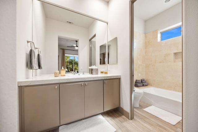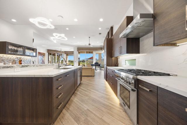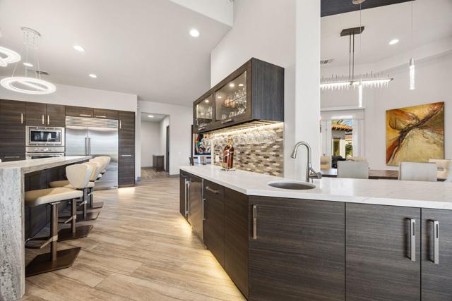 LEGACY, MISSION HILLS COUNTRY CLUB:The highly sought after, LEGACY-Oakhurst subsection of Mission HIlls Country Club. 282 LOCH LOMOND is one of only five Vintage 4 Plan's built, perfectly positioned on an elevated home-site overlooking the Pete Dye Golf Course 5th Fairway and capturing the most breathtaking, panoramic mountain range views. 282 LOCH LOMOND, is designed for both refined living and effortless entertaining. Lutron Lighting system, Whole house water softener system, Custom walk in closet with center island and two dresser banks; Bar w/sink, beverage center, quartz counters. Exceptional craftsmanship, sophisticated finishes and a seamless indoor-outdoor flow that embraces the Desert Golf Lifestyle. DRAMATIC IN EVERY WAY: Sunsets, Fairway vistas, Mountain range of nearly 360* including snow capped mountains. This IDEAL home Includes a pvt. 5 hole putting green, pebble finish pool & raised spa (courtyard location for privacy), Oversized detached casita w/kitchenette. FULL 3 CAR GARAGE w/AC, built in exterior BBQ, outdoor fireplace, exterior remote operated shade screens and remote shades at some of the interior windows. Four full bedrooms total, each with full bath PLUS POWDER rm. Solar powered for efficiency and savings. Legacy HOA dues include Mission Hills Country Club social and fitness membership, front & rear yard landscape. ELEVATED...ELEGANT...Beautifully Furnished, as is including TV's & audio/video/Sonos system. By appointment. THREE DIFFERENT GOLF MEMBERSHIP LEVEL'S OFFERED AND SPORTS CLUB MEMBERSHIP (tennis, pickleball, etc). Social and Fitness included in Legacy HOA dues.