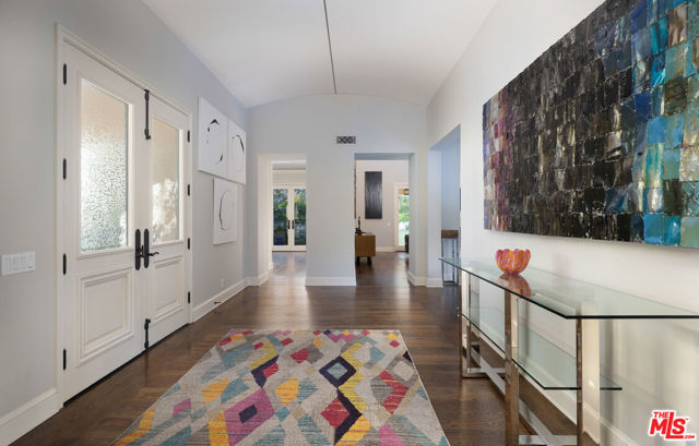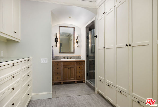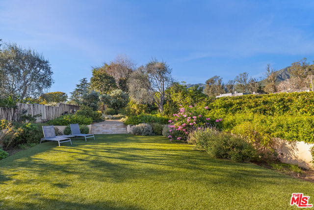 Behind the gates of Birnam Wood, with the added peace of mind and security that define life in this private Birnam Wood enclave, a rare sense of calm and connection defines daily life, where the clubhouse, course, and community amenities are all just moments away. Within this coveted setting, this beautifully crafted residence reflects the ease and refinement the neighborhood is known for, offering the appeal of a primarily single-level layout and a natural flow from the interiors to the surrounding landscape. Inside, graceful proportions and architectural scale define the home. The primary suite serves as a true sanctuary, designed with dual full bathrooms and separate closets, along with direct access to the outdoorsinviting quiet mornings or a peaceful step into the garden.Guest bedrooms are generously sized, and upstairs, a versatile flex room with custom built-in desk and storage offers an ideal setting for a home office, media lounge, or private retreat, complete with its own ensuite bath for added comfort and flexibility. At the heart of the home, the living room anchors the design with super high ceilings, a warm fireplace, and large French doors that open directly to the covered loggia, allowing gatherings to move seamlessly outside. The connection between spaces feels intuitive and effortless, with each room flowing comfortably into the next. The dining room features French doors to the patio and a dedicated wine closet with wine refrigerator - perfect for intimate dinners or special occasions. Nearby, the kitchen is beautifully appointed with porcelain countertops, high-end appliances, and its own fireplace, creating a refined and functional space at the center of the home. Outside, the garden is thoughtfully landscaped and wonderfully private, bordered by mature greenery with the 11th hole just beyond, creating a serene, tucked-away backdrop. Beneath a striking pergola, a built-in dining table custom crafted by the architect becomes a memorable setting for alfresco meals. Stone terraces and shaded seating areas offer inviting places to relax and enjoy Montecito's year-round climate. With its seamless indoor-outdoor flow, beautifully maintained grounds, and close proximity to the clubhouse, this refined Birnam Wood residence captures the essence of gracious Montecito style- elegant, inviting, and effortlessly enjoyable.