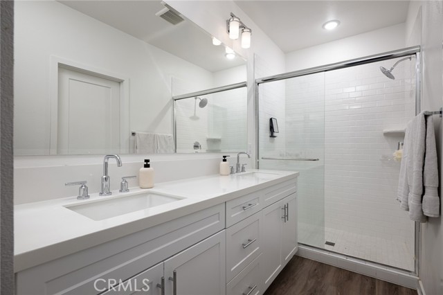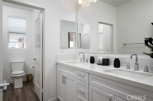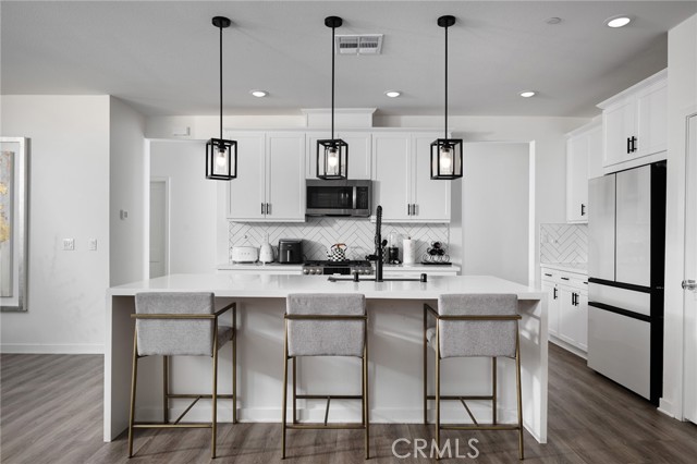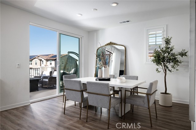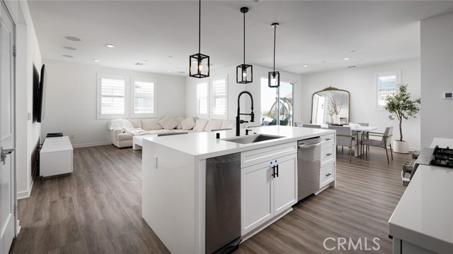 Welcome to your dream home in the highly sought-after Saddleback Place — with NO MELLO ROOS and PAID SOLAR! Built in 2023, this turnkey condo offers 3 bedrooms/2 bathrooms, 1,952 sq ft of upgraded living space, and a 2-car tandem garage — combining modern luxury with energy efficiency. From the moment you enter through the keyless entry, you’ll notice the thoughtful upgrades and designer finishes. Beautiful hardwood flooring flows throughout the entire home — including the stairs — and extra cabinetry in the entry walkway provides both style and functionality. The bright, open-concept great room is ideal for entertaining and everyday living. Built-in speakers with receiver and subwoofer create an immersive sound experience, while recessed lighting over the oversized island enhances the home’s warm, inviting ambiance. The chef’s kitchen is truly a showstopper, featuring: Dual waterfall countertops with matching surfaces throughout, Elegant backsplash, Quartz countertops & Shaker cabinetry, Upgraded oven/stove and microwave, Upgraded hardware and faucet, and spacious pantry. The living and dining areas open to a sunny private balcony — perfect for BBQs and relaxing evenings. Upstairs, all bedrooms are filled with natural light and include upgraded lighting in bedrooms and closets. The primary suite offers an extra-large double-sink vanity and a generous walk-in closet. The guest bath features sleek glass shower doors. Additional premium touches include plantation shutters in the front and blackout shades in the bedrooms for added comfort and privacy. More highlights include: Paid solar system, Tankless water heater, and Extra cabinetry for added storage. Enjoy resort-style amenities including a pool, spa, tot playground, walking paths, and BBQ areas. Located close to top-rated schools, parks, restaurants, shopping, and the year-round events at Lake Mission Viejo. This is the turnkey, energy-efficient, upgraded home buyers are searching for — and it won’t last long. Make it yours today!