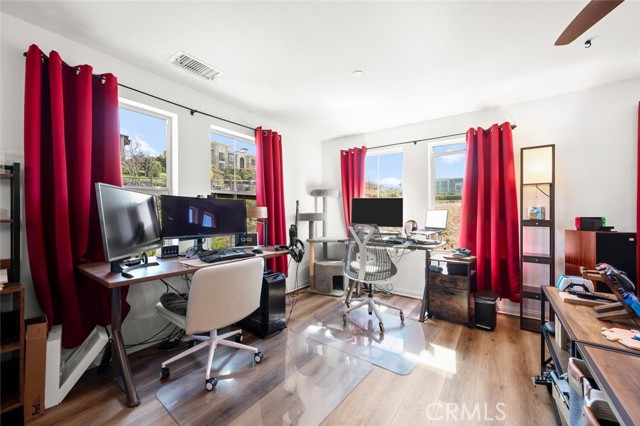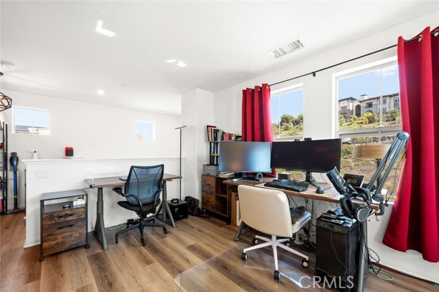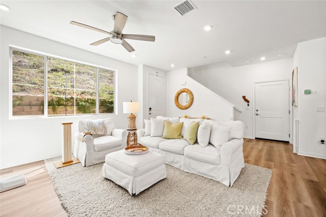 BETTER THAN BRAND NEW and PRICED TO SELL! Highly upgraded townhome located in master planned community of Melrose Heights. This rare corner lot home sits at the end of a Cul de sac and boasts 2,193 sf of living space. It lives as a single-family home and features 3 bedrooms, 2.5 bathrooms, large bonus room, outdoor space and a 2-car attached garage. The open floor plan features entry level great room and modern kitchen completed with quartz countertops, shaker style cabinets, large island and full wall designer tile backsplash. All bedrooms are conveniently located on the second floor. Primary suite is finished with white quartz countertops, walk-in shower, spa like soaking tub, and an oversized walk-in closet. Top floor offers an open floor bonus room that can be utilized for a home theater, gym, play area, or a secondary family room. This fantastic home is filled with natural light as it is a corner unit and has an abundance of windows throughout. Upgrades include luxury vinyl plank flooring, stainless steel appliances, purchased solar panels, designer tile full wall backsplash, EV charger, video capable garage door opener and much more. The home has smart features throughout, includes EERO booster units for WIFI, smart dual zone thermostat, and an electronic lock. Dedicated laundry area with full size appliances is conveniently located on the second level. Wrap around private patio is great for grilling outdoors, your personal garden, relaxation, or as a safe enclosed area for kids or pets. Additional features: First and second floor ceiling height is 9 ft, third floor ceiling height is 8 ft., dual paned windows, tank-less hot water heater. This master planned community is filled with beautiful landscaping, walking paths, multiple play areas, gated heated pool and hot tub and is walking distance to the Sports Park. Other amenities include outdoor lounge areas and picnic tables, bbqs, and a fire pit. Downtown Vista and Oceanside can be reached via the Sprinter (walking distance) within minutes. Driving distance to the beach is approximately 15-20 minutes. Conveniently located near highway 76, 78, freeway 5, Guajome Park, multiple shopping plazas, and Camp Pendleton. The home is under builder 10-year warranty.