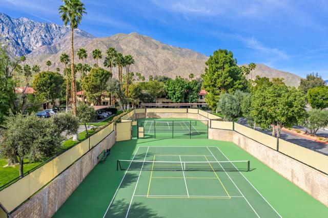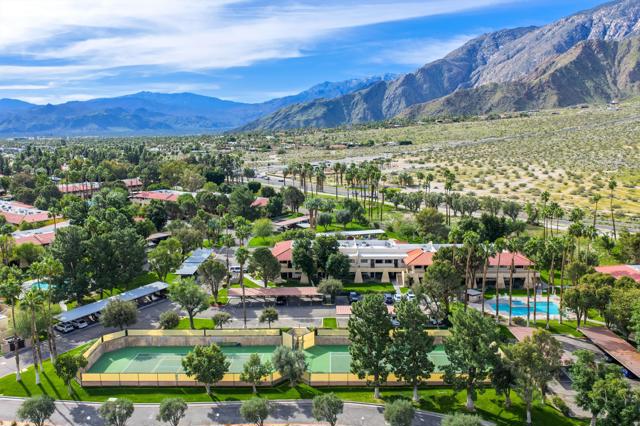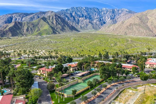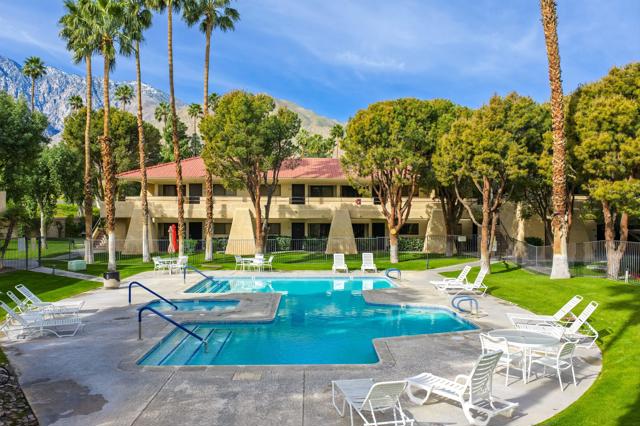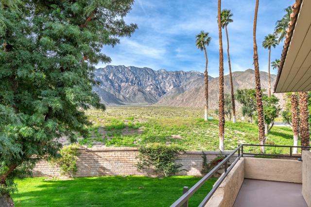 Welcome to your desert retreat at Palm Springs Villas II, a beautiful and serene gated community. This recently upgraded one bedroom, one bath second floor condo offers cozy charm, mountain views, and effortless resort style living. Light and inviting, the home has been thoughtfully refreshed, creating a comfortable and stylish space perfect as a primary residence, second home, or rental investment. Privately situated, yet conveniently close to one of the community pools, it offers the perfect balance of tranquility and accessibility. Enjoy morning coffee with beautiful mountain backdrops and unwind in the peaceful surroundings that make this community so special. Palm Springs Villas II is known for its beautifully maintained, park-like grounds that stretch across the community with expansive greenbelts ideal for picnics, morning walks, or simply soaking in the desert sunshine. Residents enjoy six sparkling pools and eight spas, tennis courts, pickleball, a putting green, and open park spaces, all designed for relaxed desert living. The location is unbeatable. Just minutes to world-class hiking trails, the Palm Springs Aerial Tramway, the recently completed CV Link, and vibrant Downtown Palm Springs with its shopping, dining, and entertainment. Easy freeway access makes getting here and enjoying the desert lifestyle seamless. Resort living, mountain views, and a prime Palm Springs location- this is desert living at its finest!
