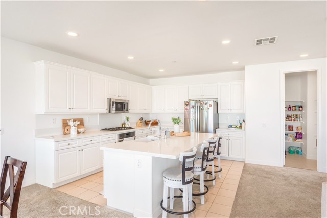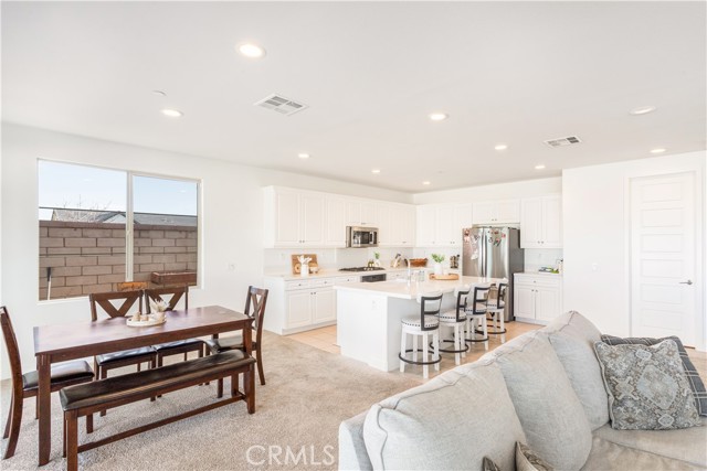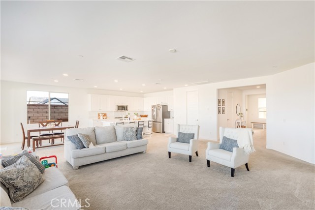 Spacious and beautiful 4-bedroom 2.5 bath single story home located on a cul-de-sac in desirable Audie Murphy Ranch. Inviting entry way leads to open great room, kitchen and dining area. Kitchen includes many upgrades including farmhouse sink, 5 burner gas cook top and upgraded appliances. Kitchen has white cabinetry, quartz countertops and large walk-in pantry. Home sits on a large corner lot on a cul-de-sac. Backyard includes covered patio area with turf and custom lighting. House is an entertainer's dream. This spectacular home is approximately 30 mins from Temecula Wine country. Solar system included. Residents of Audie Murphy Ranch enjoy over 30 acres of parks, a 30,000 sq ft clubhouse, multiple pools, spas, a skatepark, sports fields, and miles of trails. The Ranch house a 3.8-acre hub with a clubhouse, two pools, tot lot, BBQ areas, and a grassy amphitheater. The Plunge a recreational spot featuring a Junior Olympic swimming pool, a children's wading pool. The Spirit Park (lighted tennis/basketball courts, memorial garden and 11 acres Sports Park with soccer/baseball fields and a skate park. Miles of walking, hiking and biking trails, plus neighborhood parks with playgrounds and picnic spots. Regular events, such as pizza and bingo nights, yoga, and holiday celebrations, are hosted at the clubhouse. The community is situated near an ecological preserve , with easy access to I-15 and I-215.