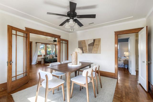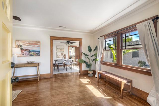 Experience the perfect blend of early-century charm and modern convenience in the heart of North Park. This masterfully updated Craftsman sits on a 5,000 sqft lot, just steps away from the neighborhood's best restaurants, coffee shops, boutiques, and farmer’s market. ~~Architectural delight & modern comfort: Enjoy original hardwood floors, elegant, coffered ceilings, and gorgeous period wood trim. The wood-burning brick fireplace has been reinforced and restored to working conditions, featuring classic built-ins for a warm, inviting atmosphere. The home features a brand-new roof and fresh interior and exterior paint completed in February 2026. The traditional gas furnace has been replaced with a concealed Mitsubishi mini-split system for year-round climate control. Front-load laundry is tucked away for hidden convenience. ~~Chef’s kitchen & designer baths: The kitchen was renovated in 2011 to feature flush-inlay cabinetry, soapstone countertops, and high-end stainless-steel appliances. The home's two bathrooms were also redone. The primary features a beautiful stone and tile shower surround, and the other offers a cast iron clawfoot tub, penny-round tile flooring, and elegant wainscoting. ~~Exceptional outdoor living & rare parking: Relax on the elevated composite deck amidst mature, fully irrigated landscaping. Wired for indoor and outdoor speakers, and replete with a hard-lined gas barbecue, the house is ready for your housewarming party. A detached 1-car garage is supplemented by a generous driveway that accommodates at least three additional vehicles – a true North Park rarity. Showings begin March 5th ~ schedule your tour today to see how this Craftsman gem exceeds every expectation!