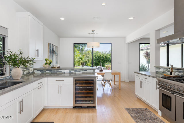 A rare single-story opportunity on one of La Canada's most coveted streets -- a large, well-manicured front lawn greets you on arrival, with an oversized driveway set back from the street signaling something special. Inside, 3,020 sq ft of beautifully rebuilt living space sits on a flat, private 15,372 sq ft lot.Rebuilt in 2012, the home opens with a dramatic vaulted entry: soaring ceilings, rich hardwood floors throughout, and expansive sight lines that move naturally through sun-filled rooms. The architecture is timeless; the execution is meticulous.The floor plan is at once gracious and genuinely livable. A fireplace-anchored living room offers an intimate setting for entertaining, while the family room, outfitted with custom built-ins and its own fireplace -- is the kind of space families actually use, with peaceful backyard views and peek-a-boo mountain sight-lines.At the heart of the home, the chef's kitchen is appointed for serious cooking and effortless hosting: Thermador 6-burner range, Sub-Zero refrigerator, Sub-Zero wine refrigerator, quartz countertops, generous prep space, and a dining area that flows directly to the outdoor entertaining terrace.All four bedrooms are en suite, a distinction that matters. The primary suite is genuinely retreat-worthy: oversized and light-filled, with direct backyard access, spa bath with dual vanities, soaking tub with jacuzzi jets, separate shower, and a custom California walk-in closet. A private guest suite offers flexible space ideal for extended stays or remote work.Outside, a sparkling pool and spa, expansive grassy play area, and generous patio space anchor a backyard that is flat, fully usable, and entirely private.Additional appointments include a powder bath, dedicated laundry room, wired security system, two-car garage, and electric vehicle charger.Within the award-winning La Canada Unified School District, minutes from Blue Ribbon schools, local parks, La Canada Town Center, and easy freeway access -- this is the rare property where everything aligns.
