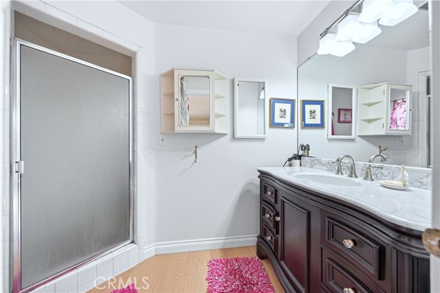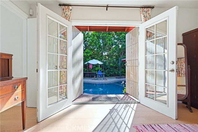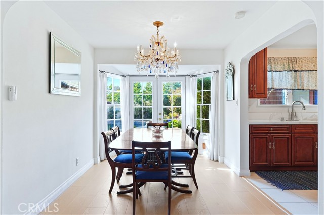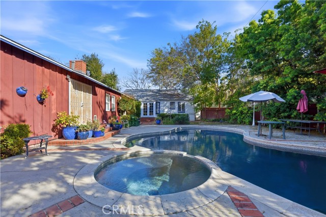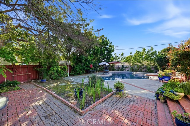 Located in the desirable Los Altos neighborhood on an oversized 7,322 square foot lot, this home offers 3 bedrooms and 3 bathrooms, a spacious family room, a sparkling pool and spa, and lush landscaping. As you enter the living room, a gorgeous view of the pool and spa immediately captures your attention through French doors framed by side windows. Natural light floods the adjacent dining room, where an arched opening leads to the remodeled kitchen. The surprisingly large kitchen offers tile flooring, quartz countertops, abundant cabinetry, and a built-in coffee/tea bar. The primary suite is truly expansive, featuring an entire wall of closets and an en-suite bathroom with shower and elegant wood vanity. French doors open directly to the pool area, creating a wonderful indoor-outdoor environment. Between the kitchen and primary suite is a welcoming family room, also with French doors to the backyard, a white-brick fireplace, a built-in bookcase and a three-quarter bathroom. The L-shaped design of this home ensures that nearly every room enjoys views of the resort-like backyard. In addition to the pool and spa, there is space for playing, gardening, and dining. The additional two bedrooms are nicely sized and share a charming, full bathroom. Other highlights of the home include central heat and air conditioning, luxury vinyl plank throughout most of the home, a laundry room and ample storage.