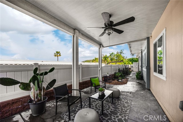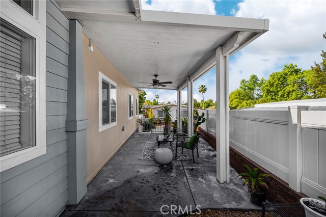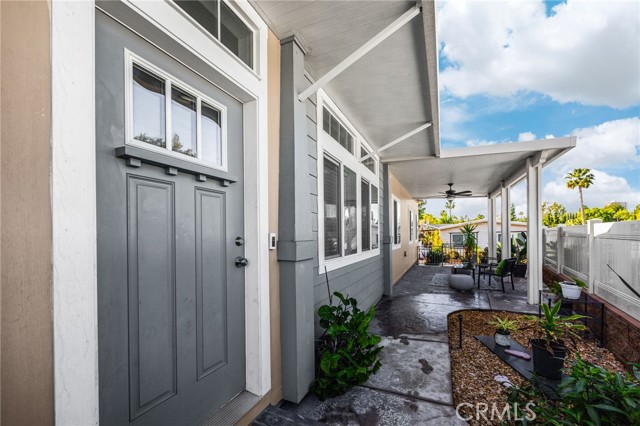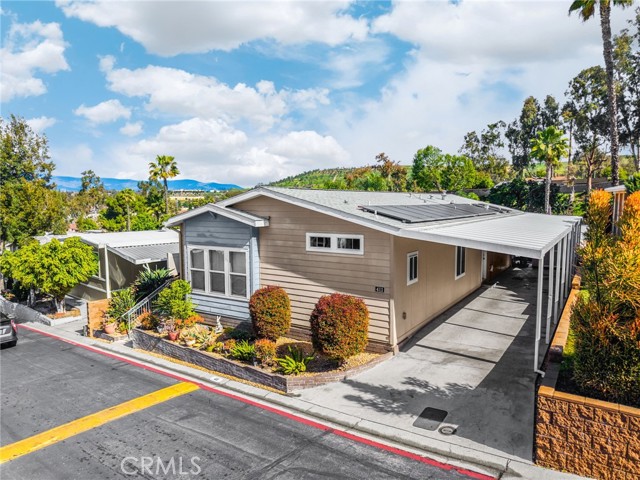Step inside this beautifully designed manufactured home and immediately notice the bright, open feel created by high ceilings, and an easy flow floor plan. Natural light pours through double pane windows, highlighting the stylish vinyl flooring, crown molding, and recessed lighting throughout. The kitchen is truly the heart of the home, featuring gleaming quartz countertops, plenty of cabinets, and a spacious island that opens seamlessly to the dining area ideal for hosting dinner parties or casual dining. A dedicated laundry room with gas hookups adds convenience, while central air and heat keep you comfortable year round. Outside, you’ll find plenty of space to relax and unwind. Create your own outdoor retreat on the covered patio. The covered carport easily accommodates up to three vehicles, and guest parking is readily available. Solar panels add energy efficiency and long term savings. Beyond your front door, the community amenities truly set this home apart. Residents enjoy access to two sparkling pools, picnic areas, a sport court, gym/exercise room, recreation room, clubhouse, and banquet facilities that are perfect for gatherings and special events. With a security guard and controlled park access, you’ll also appreciate the added peace of mind. This home offers comfort, style, and community living.