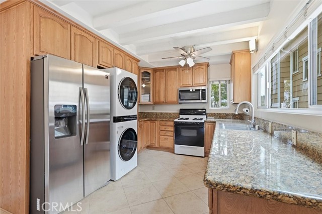 Welcome to 600 W. Lambert Rd. in the beautiful and exceptionally clean city of La Habra — a turnkey opportunity that simply feels like home. This warm and inviting two-bedroom, one-and-a-half-bath residence offers an open kitchen and family room layout that makes everyday living comfortable and connected. The kitchen flows seamlessly into the living space, while wood-like luxury vinyl flooring in the bedrooms and living room adds both durability and style. Tile flooring in the kitchen and bathrooms keeps maintenance easy and practical. You’ll appreciate central heat and air conditioning, dual-pane windows, and ceiling fans in the primary bedroom, kitchen, and dining area — thoughtful upgrades that enhance year-round comfort. Step outside to your own secluded rear patio just off the living room — perfect for quiet mornings or winding down in the evening. Additional conveniences include a stacked washer and dryer inside the unit, a two-car garage with built-in storage shelving, and ample guest parking nearby. The community amenities are just steps away — including a sparkling pool, recreation room, and secure mailbox area. And directly adjacent to the community is beautifully refinished Vin Scully Centennial Park, featuring a dog park, pickleball courts, basketball courts, children’s play structures, and expansive green fields. With schools K–12 nearby and everyday shopping conveniences like Costco, Trader Joe’s, Sprouts, and Target just minutes away, this home offers both comfort and convenience in one exceptional location.