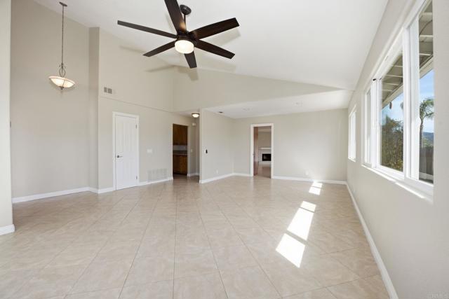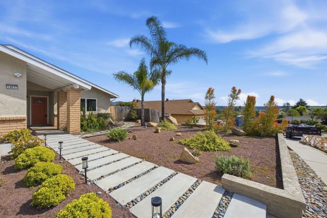 Single-Level Living with Sweeping Views in Upper Windmill. Experience refined privacy and effortless style in this thoughtfully upgraded single-story home. Perfectly positioned on the desirable north side of Twin Peaks and located within the award-winning Poway Unified School District, this residence is ideal for both everyday comfort and memorable entertaining. Step inside to an open, light-filled layout highlighted by dramatic vaulted ceilings and a seamless indoor-outdoor connection. Beautiful LVP wood flooring enhances the airy ambiance throughout. The expansive primary suite offers a peaceful escape with direct access to the backyard—an inviting space to relax and take in the panoramic views—complete with custom closet organization. The updated granite kitchen shines as the heart of the home, complemented by beautifully appointed bathrooms and elevated designer finishes. Major improvements provide true peace of mind, including a brand-new roof (2025) with transferable warranty, full plumbing repipe (2022), and new water heater (2021). Outdoors, the spacious yard provides the perfect setting for gatherings, sunsets, and quiet mornings alike. A generous patio and deck create multiple entertaining areas surrounded by thoughtfully designed drought-tolerant landscaping, raised garden beds, and mature fruit trees. A fully finished detached shed adds incredible versatility—complete with insulation, air conditioning, and windows framing the surrounding mountain ranges. Previously used as a private home office, this flexible space is ideal for remote work, a creative studio, gym, or peaceful retreat. With dedicated RV parking and room to accommodate all your North County lifestyle needs, this Upper Windmill gem truly offers the best of comfort, functionality, and view-inspired living.