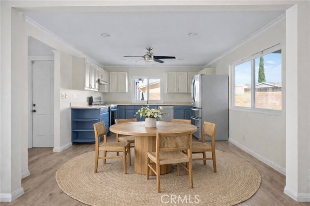 Welcome to 2165 Malcolm Street — a beautifully upgraded two-story home where thoughtful updates, inviting curb appeal, and a rare oversized fan-shaped lot come together. Offering approximately 1,600 square feet of comfortable and versatile living space, this home features an expansive front yard anchored by a mature birch tree. Inside, new luxury laminate wood flooring spans the main level, complemented by an upgraded kitchen featuring stainless steel appliances. The open-concept layout is ideal for seamless indoor-outdoor living and entertaining. Upstairs features three bedrooms, including the primary, while a convenient downstairs bedroom and full bathroom provide flexibility for guests or multi-generational living. Step out to your standout of a backyard. The home is situated on a rare and oversized 7,800+ square foot fan-shaped lot that widens at the rear, resulting in an expansive yard that is rarely available and offers endless potential. A covered patio with ceiling fans provides a comfortable space for relaxing or hosting gatherings. Raised garden beds are also already in place for growing herbs, fruit, and vegetables alongside mature lemon, pomegranate, and plum trees. Additional highlights include recessed lighting throughout, direct garage access with built-ins, an oversized storage closet, laundry in the garage, RV/boat parking beside the home, and a roof completed within the past three years. Don’t miss out on this incredible opportunity!